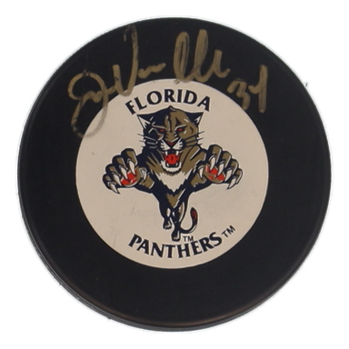 Florida Panthers Logo Hockey Puck. Hand-signed by John Vanbiesbrouck.