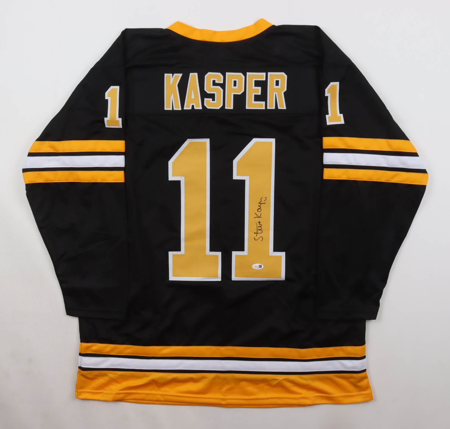 Custom jersey with everything sewn on, size XL. Hand-signed by Steve Kasper.
