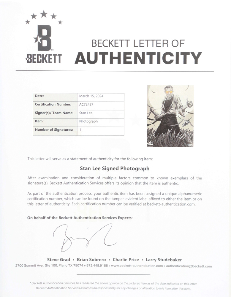 The autograph includes an official Beckett Authentication Services hologram and matching LOA for authenticity purposes.
