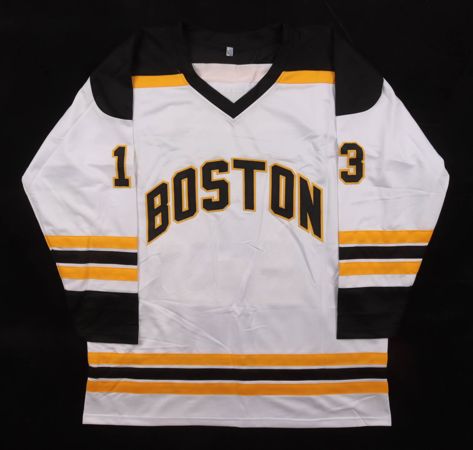 Custom jersey with everything sewn on, size XL. Hand-signed by Charlie Coyle.