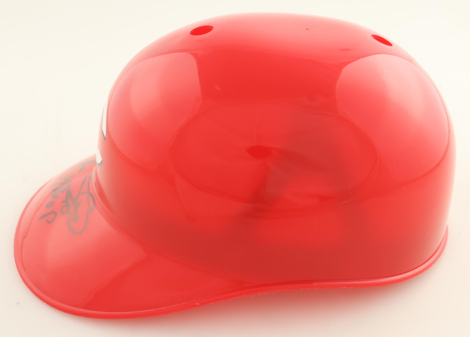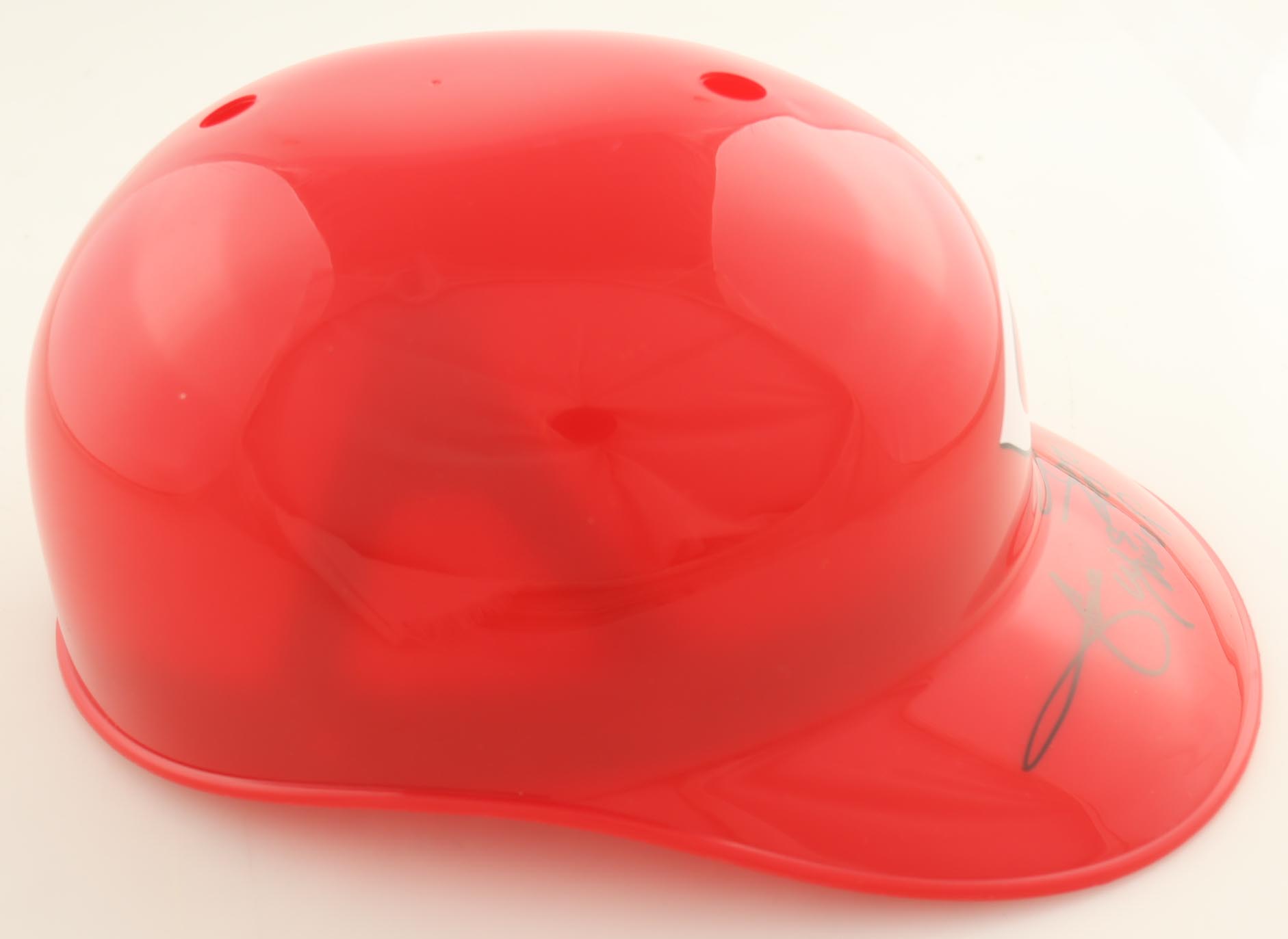 Cincinnati Reds replica plastic souvenir batting helmet. Hand-signed and inscribed by Jose Rijo.