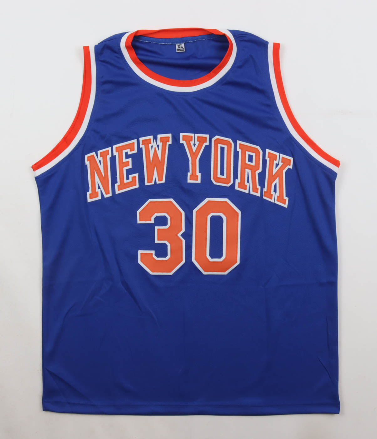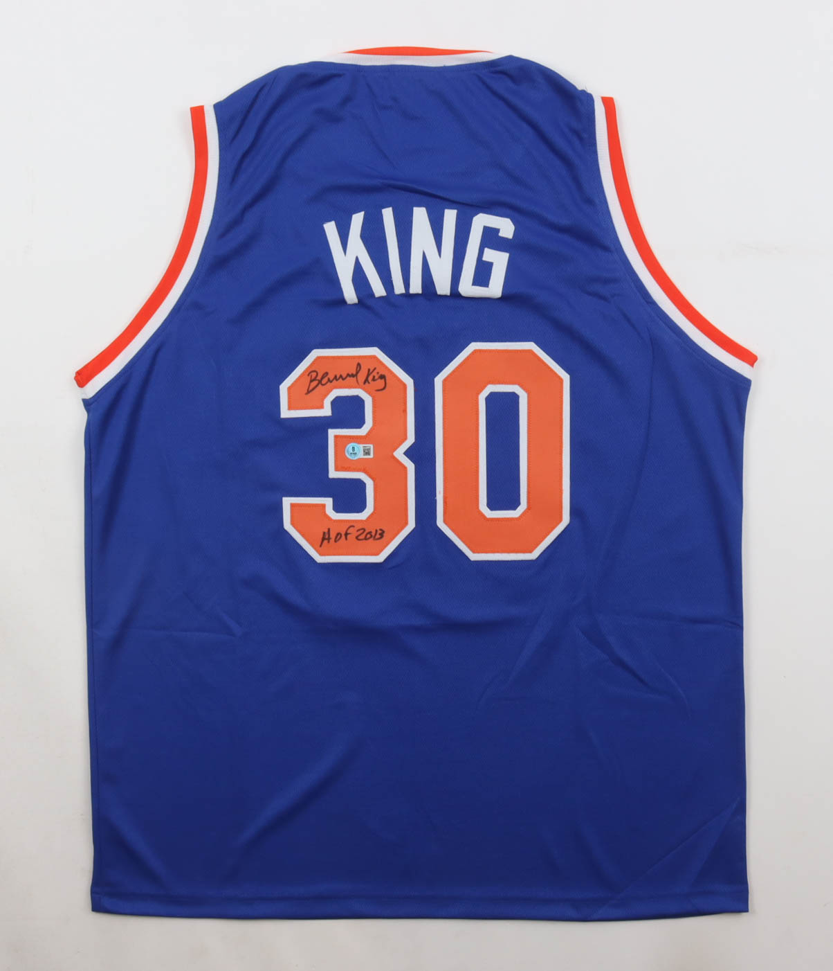 Custom jersey with everything sewn on, size XL. Hand-signed and inscribed by Bernard King (HOF).