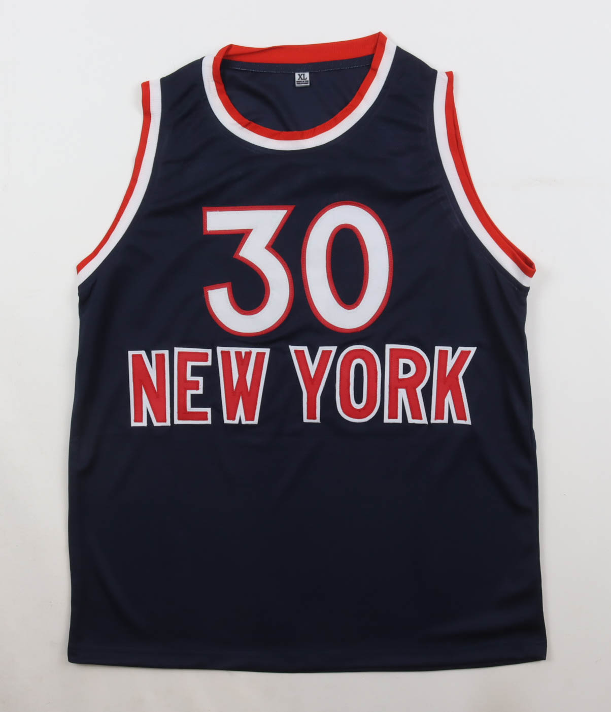 Custom jersey with everything sewn on, size XL. Hand-signed and inscribed by Bernard King (HOF).
