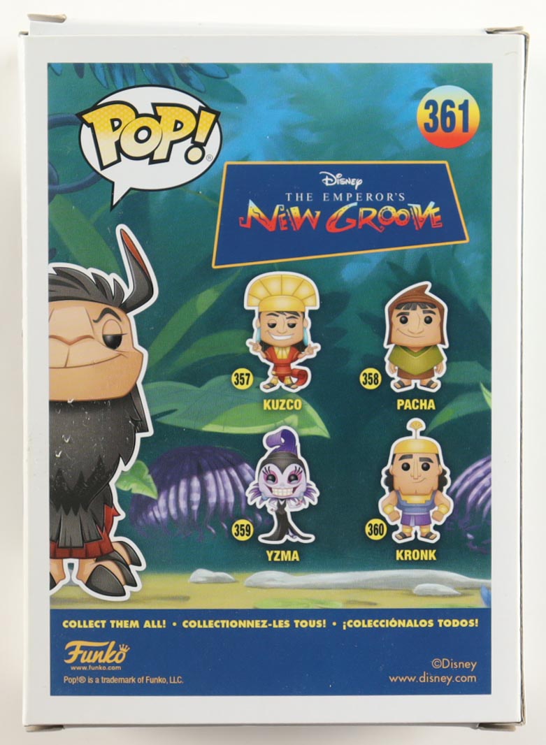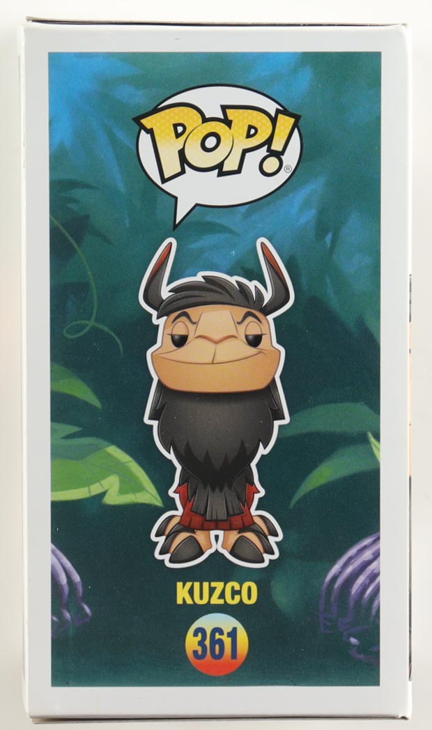 Vinyl figure measures approximately 4" tall and has been hand-signed on the packaging by David Spade (Emperor Kuzco). Please note, the window has been swapped.