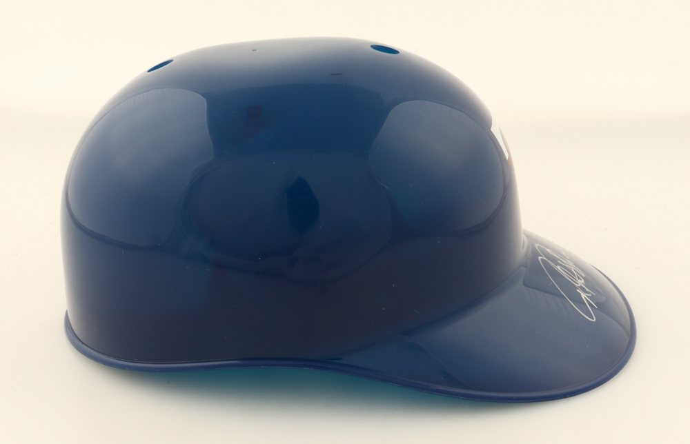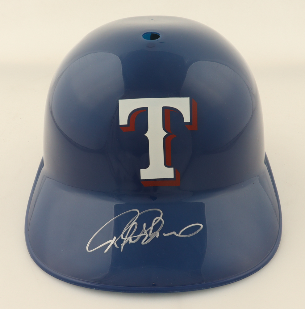 Texas Rangers Full-Size Plastic Souvenir Replica Batting Helmet. Hand-signed by Rafael Palmeiro.