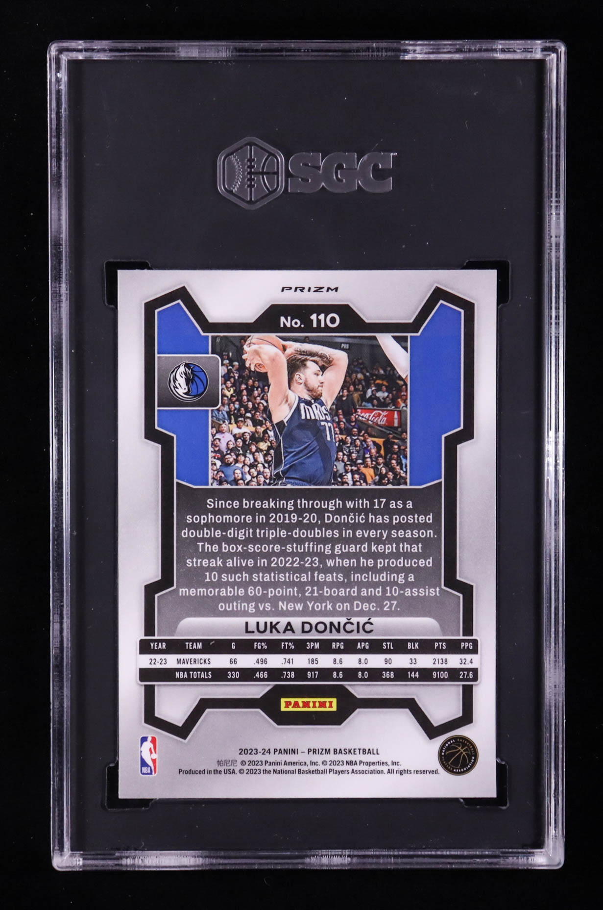 Luka Doncic 2023-24 Panini Prizm Prizms Pink Ice #110 (SGC 10)