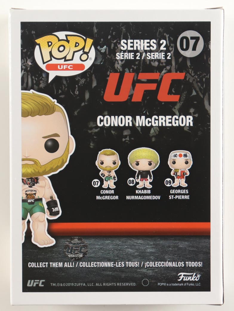 Funko Pop! vinyl figure measures approximately 4" tall and has been hand-signed on the packaging by Conor McGregor. Please note, the window has been swapped, see photos for more details.