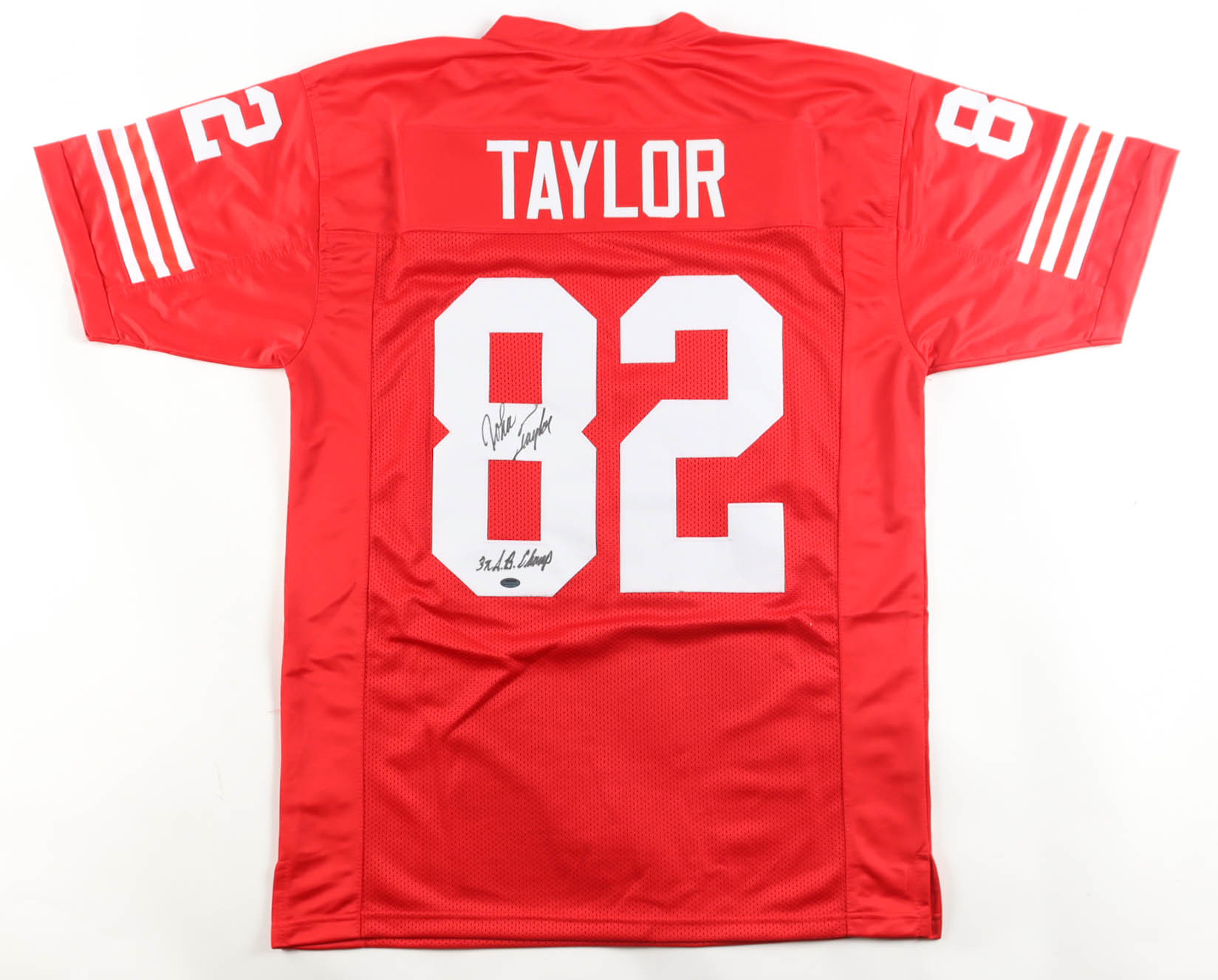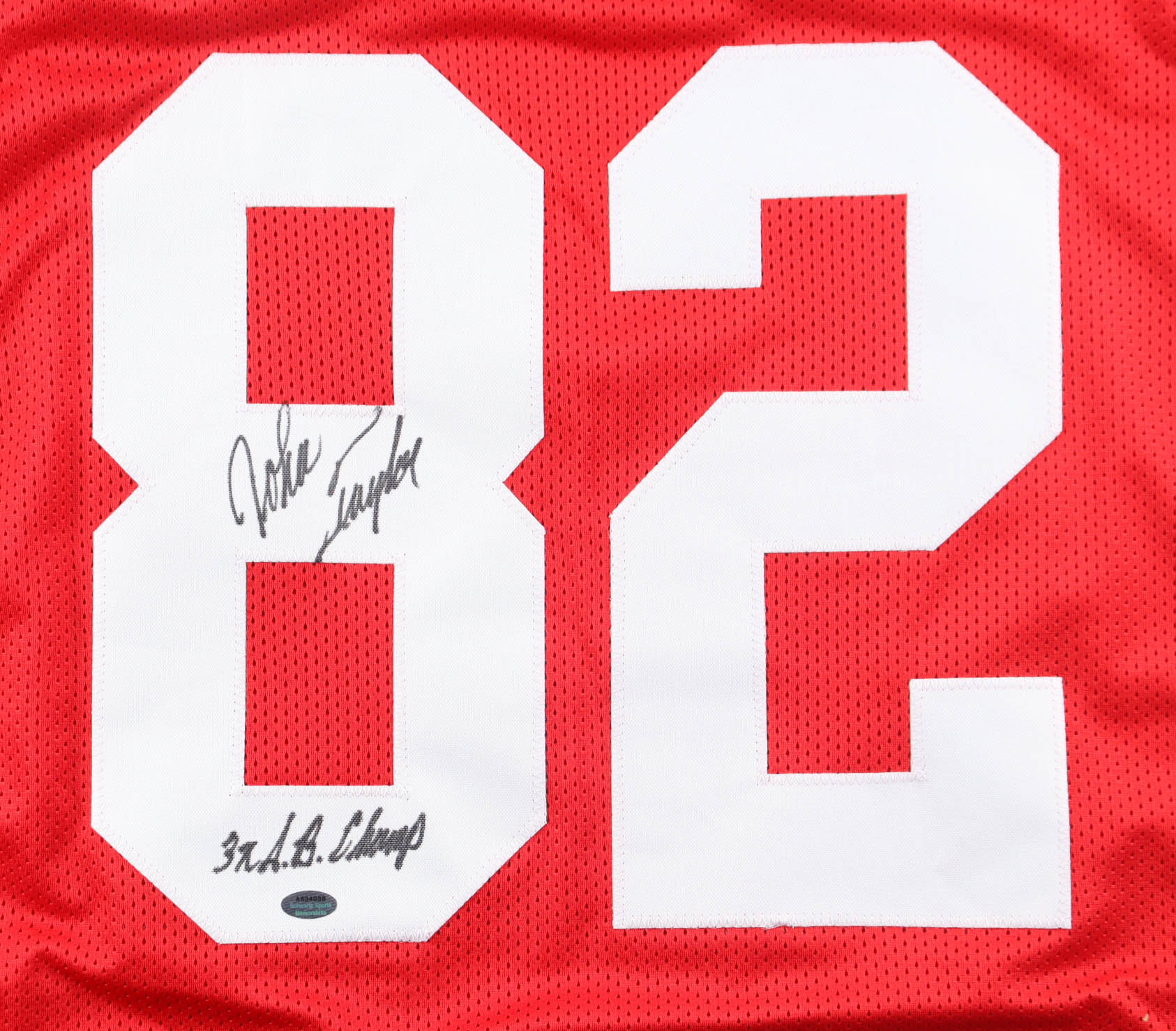 Custom jersey with everything sewn on, size XL. Hand-signed and inscribed by John Taylor.