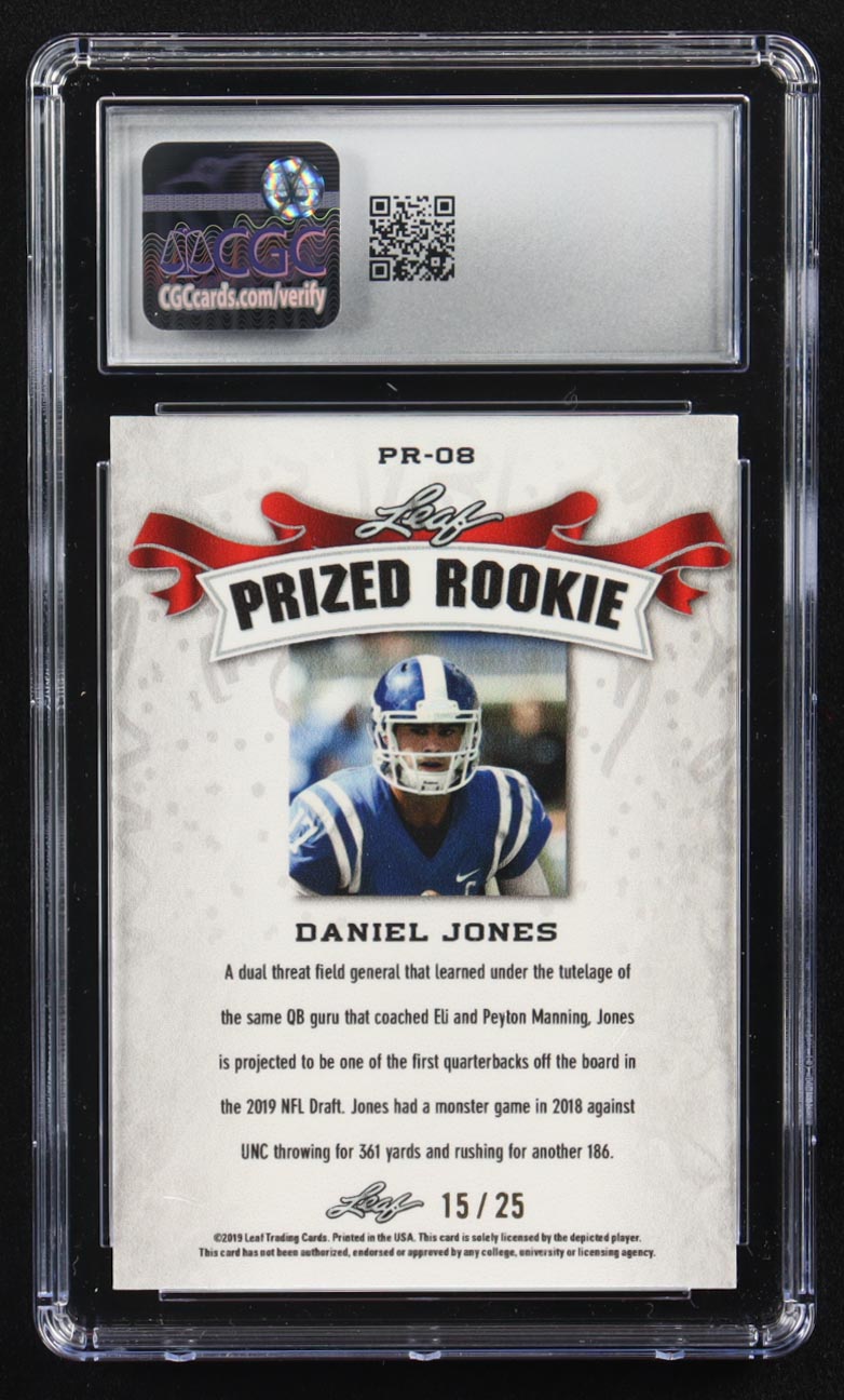Daniel Jones 2019 Leaf Special Release Metal Prized Rookies Prismatic Silver #PR-08 RC #15/25 (CGC 10)