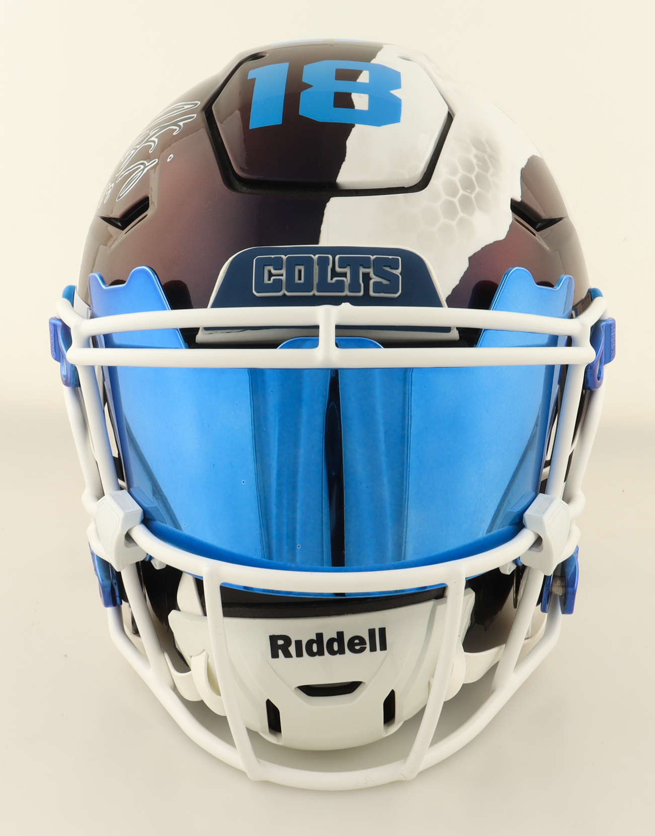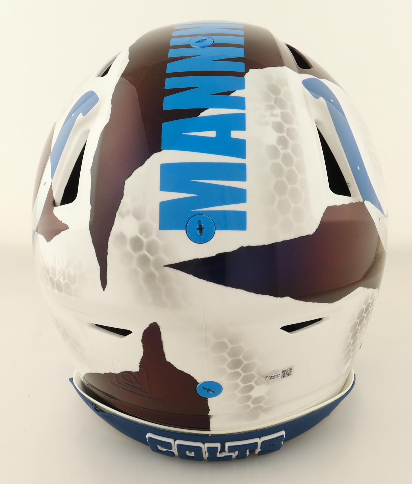 Riddell Indianapolis Colts custom painted full-size authentic on-field SpeedFlex helmet. Hand-signed by Peyton Manning (HOF).