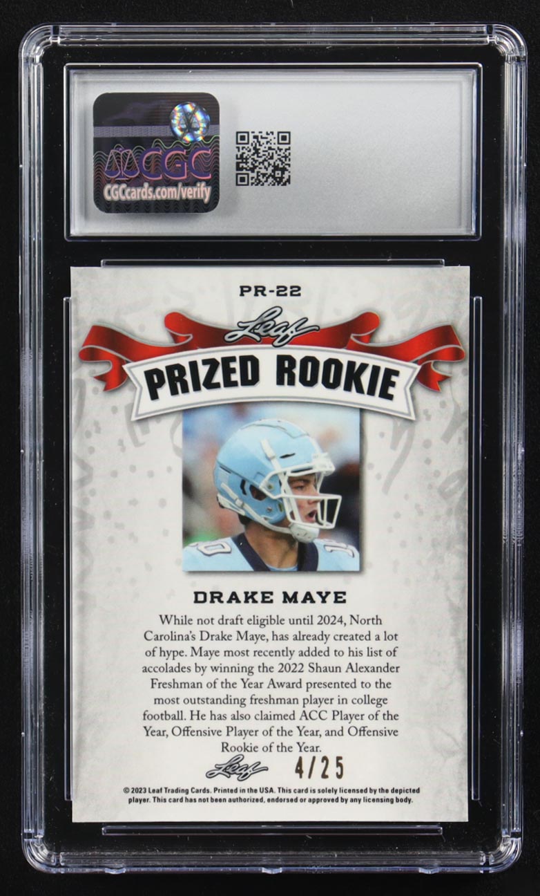 Drake Maye 2023 Leaf Special Release Metal Prized Rookie Silver Mojo #PR-22 RC #4/25 (CGC 10)