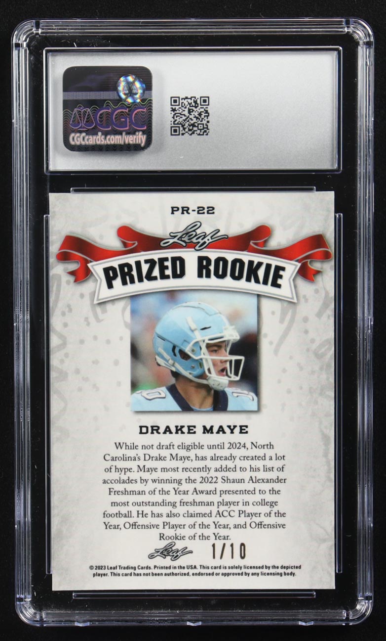 Drake Maye 2023 Leaf Special Release Metal Prized Rookie Pink Mojo #PR-22 RC #1/10 (CGC 10)