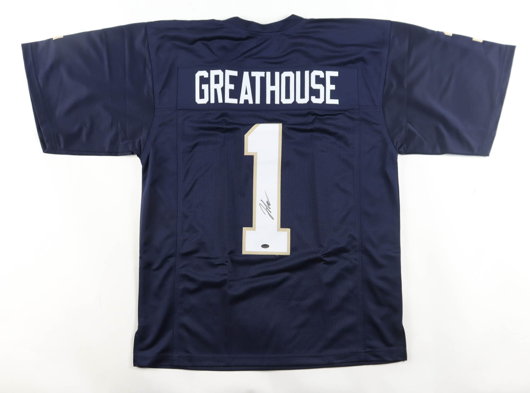 Custom jersey with everything sewn on, size XL. Hand-signed by Jaden Greathouse.