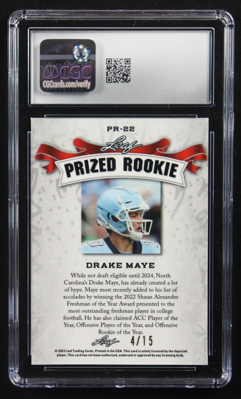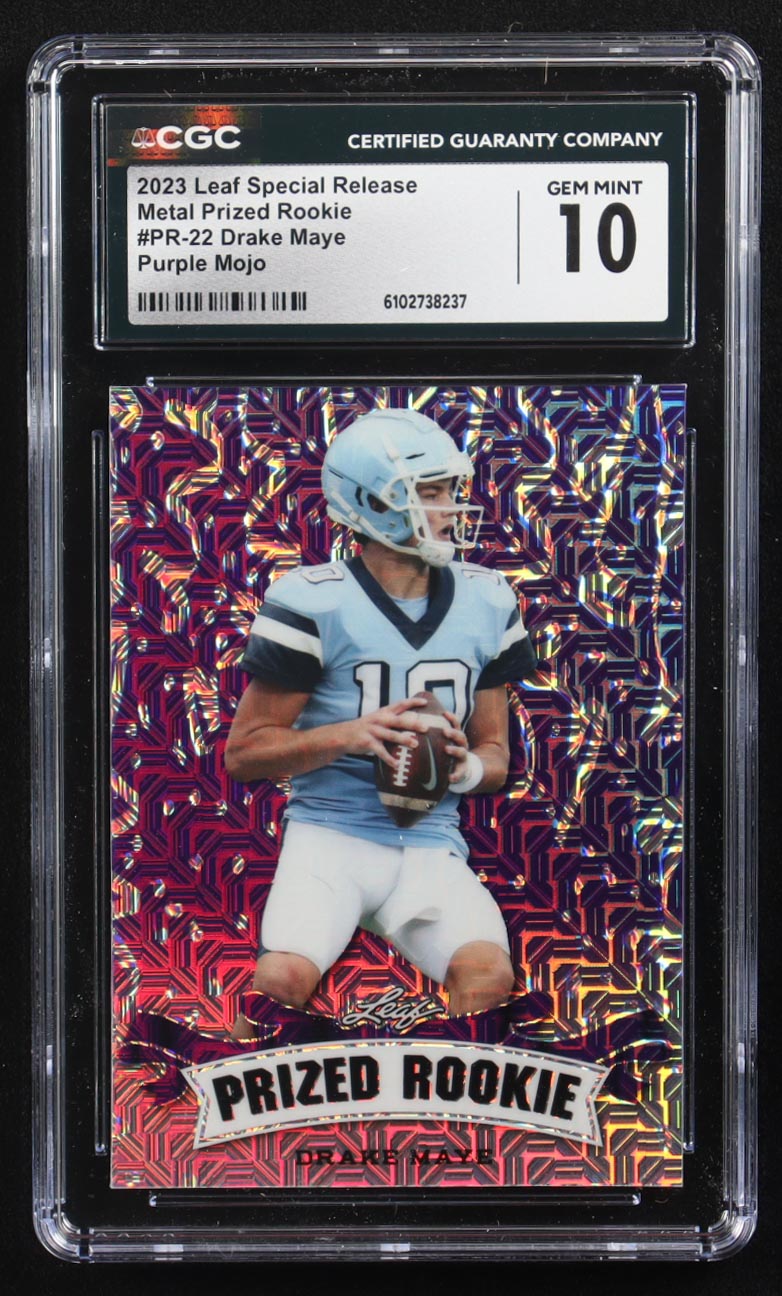 Drake Maye 2023 Leaf Special Release Metal Prized Rookie Purple Mojo #PR-22 RC #4/15 (CGC 10)