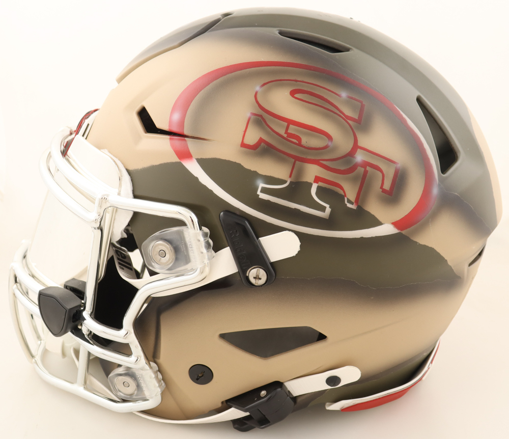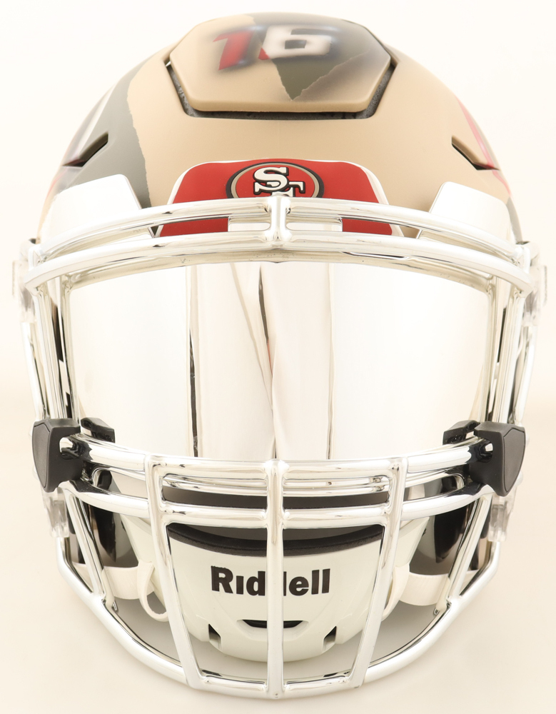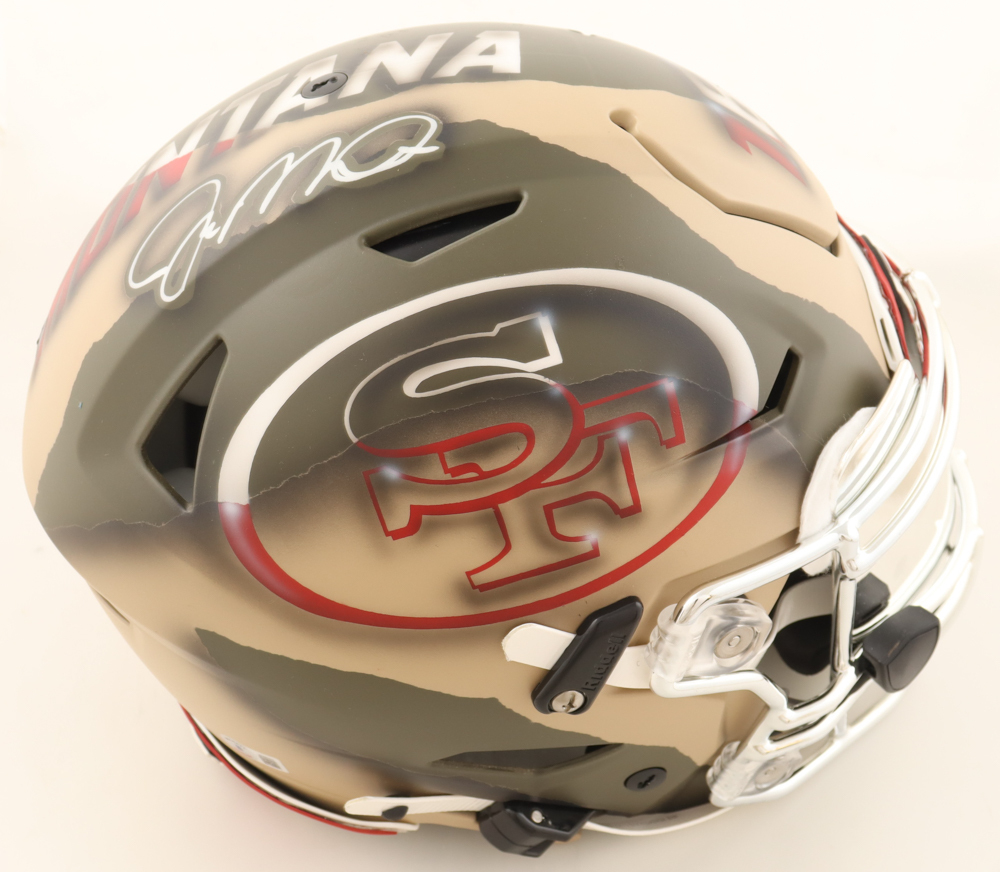 Riddell San Francisco 49ers custom painted full-size authentic on-field SpeedFlex helmet. Hand-signed by Joe Montana (HOF).