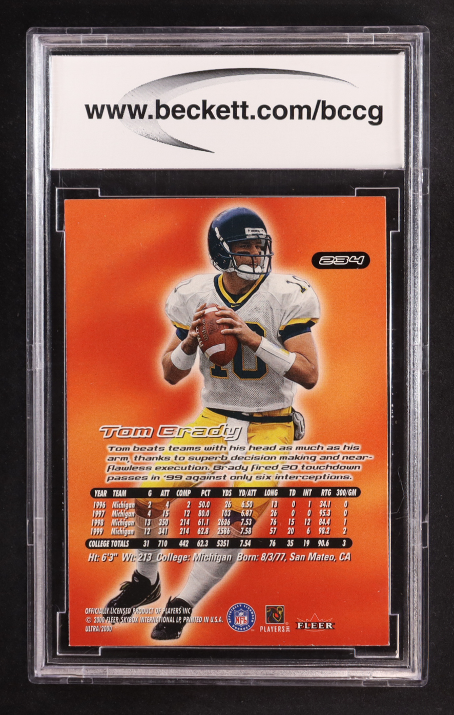 Tom Brady 2000 Ultra #234 RC (BCCG 10)