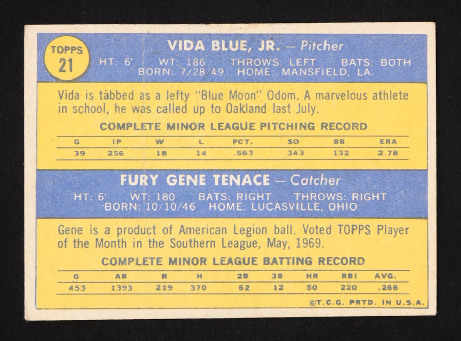 Vida Blue / Gene Tenace 1970 Topps #21 RC