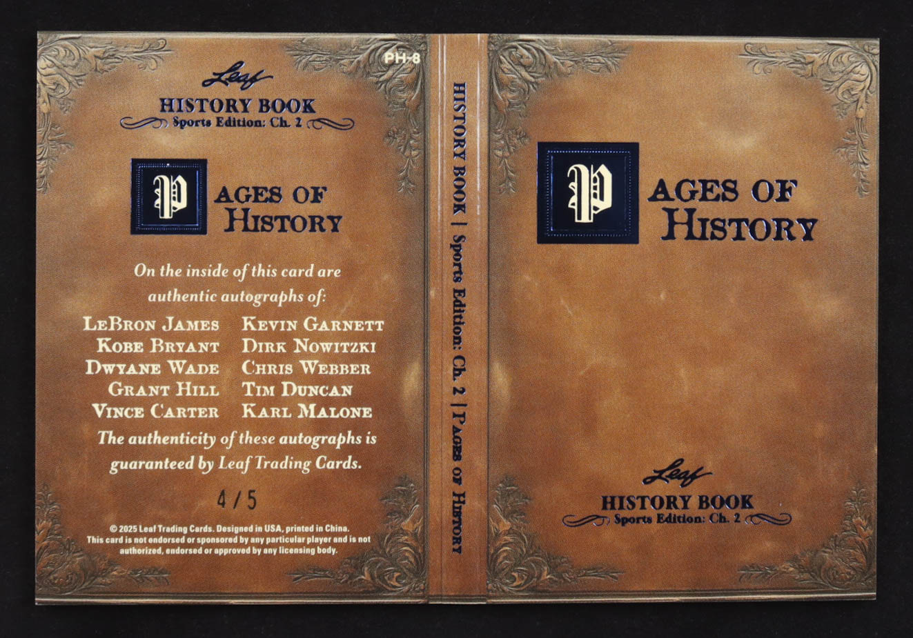 LeBron James / Kobe Bryant / Dwyane Wade / Grant Hill / Vince Carter / Kevin Garnett / Dirk Nowitzki / Chris Webber / Tim Duncan / Karl Malone 2025 Leaf History Pages of History Blue #PH8 #4/5