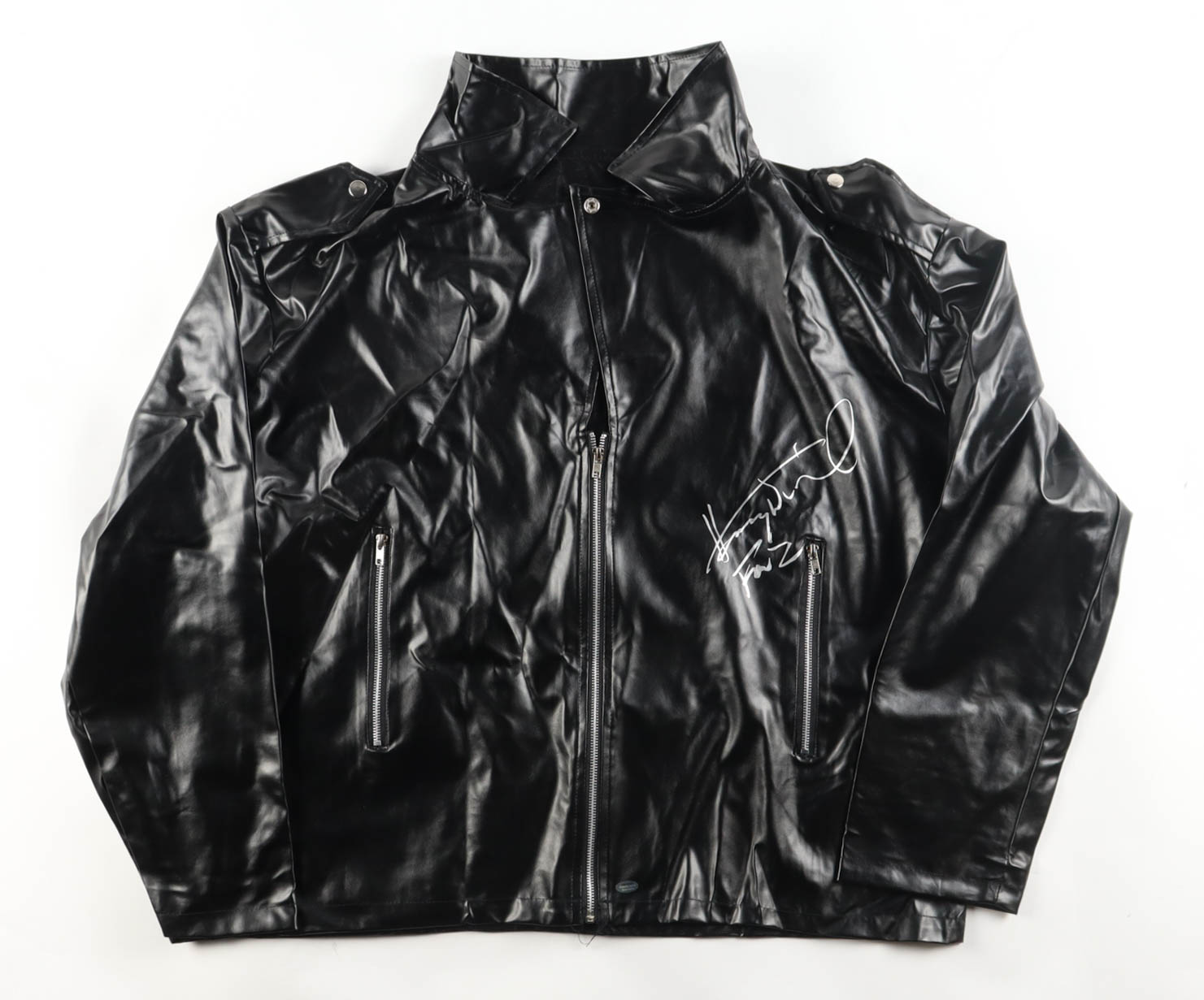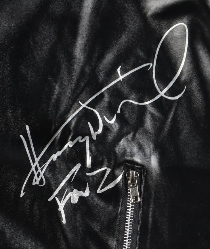 Custom faux leather jacket has been hand-signed and inscribed by Henry Winkler (Fonzie).