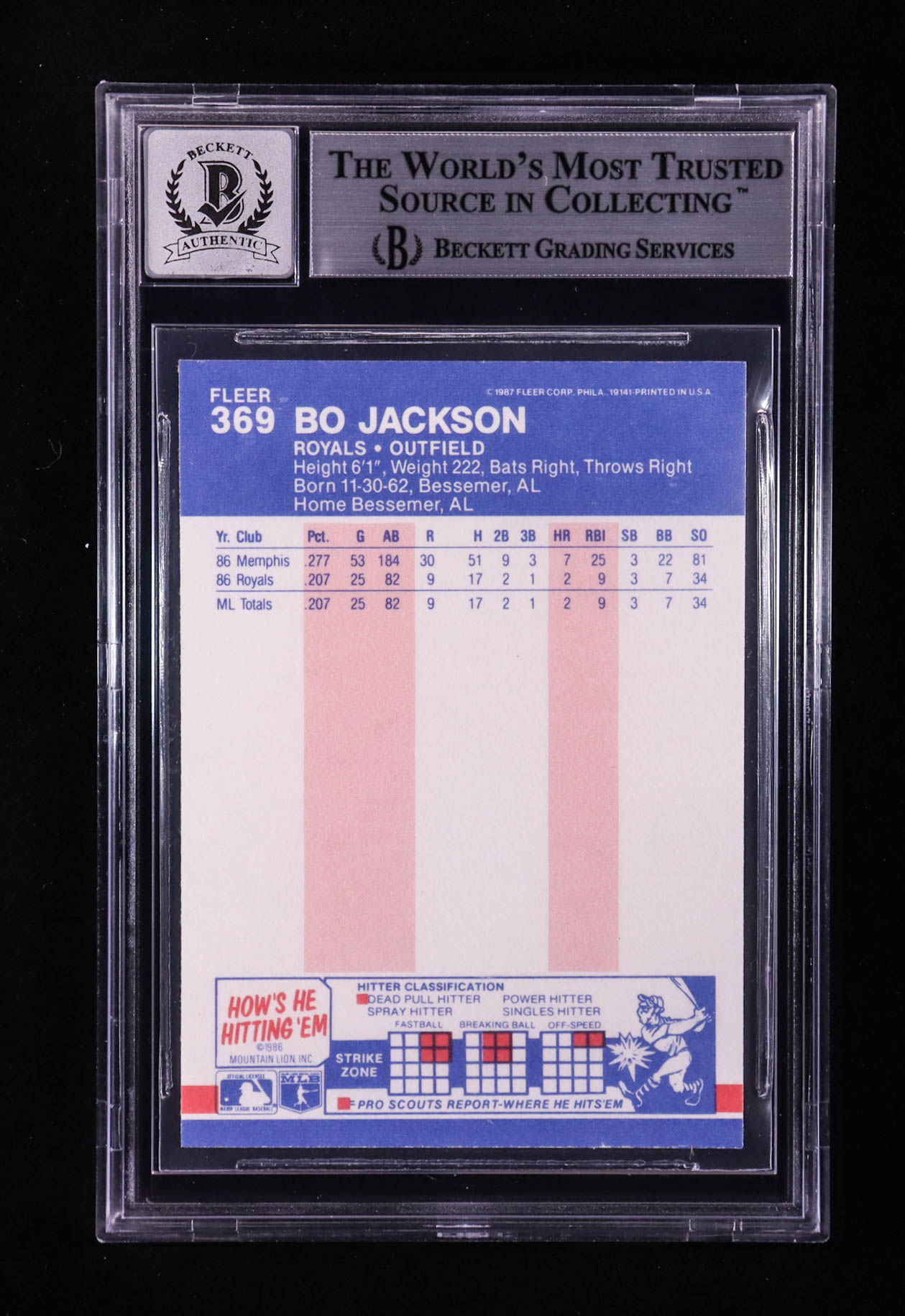 Bo Jackson Signed 1987 Fleer Glossy #369 RC (BGS | Auto 10)