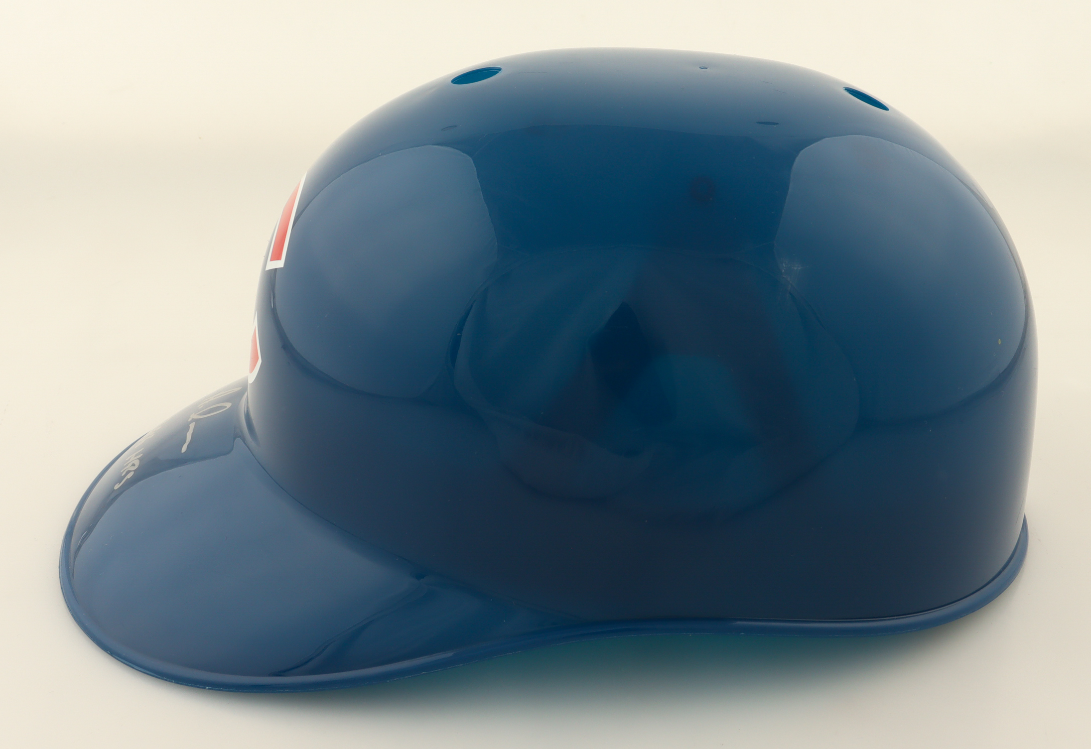 Chicago Cubs full-size replica plastic souvenir batting helmet. Hand-signed and inscribed by Aramis Ramirez.