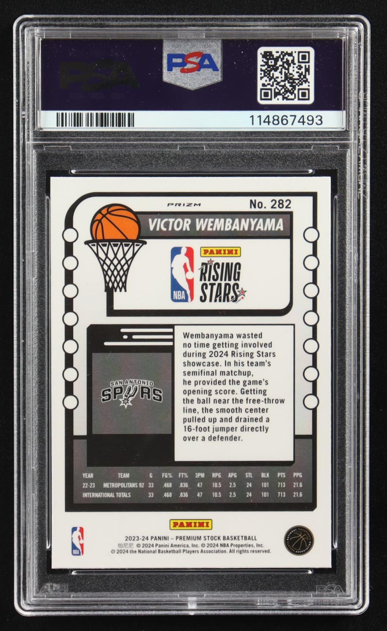 Victor Wembanyama 2023-24 Hoops Premium Stock Disco Prizm #282 RC (PSA 10)