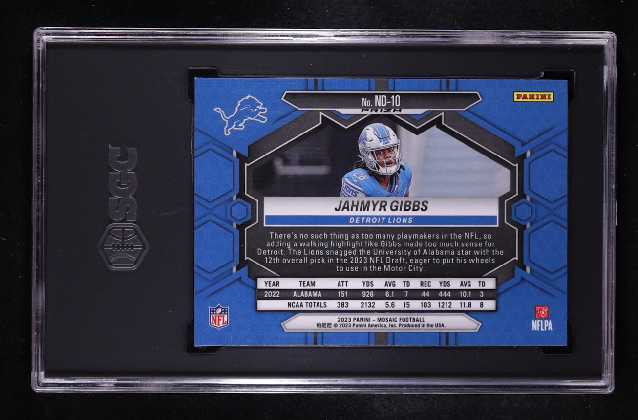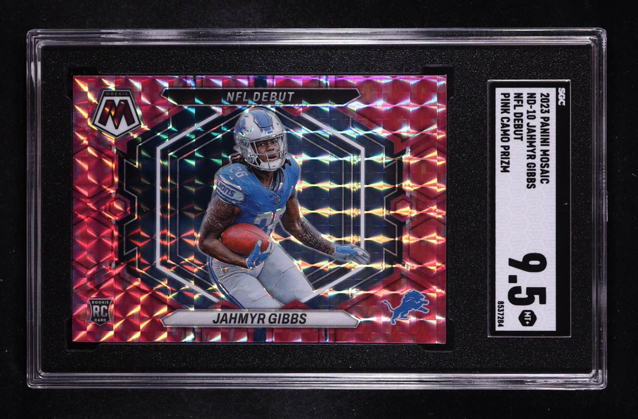 Jahmyr Gibbs 2023 Panini Mosaic NFL Debut Mosaic Camo Pink #10 RC (SGC 9.5)