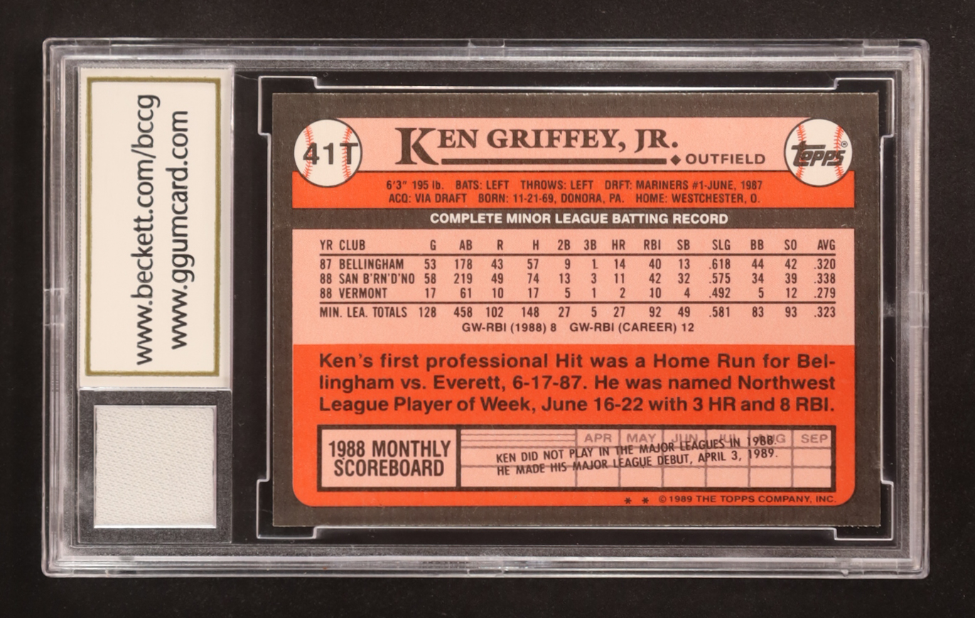 Ken Griffey Jr. 1989 Topps Traded #41T Game-Used Jersey RC (BCCG 10)