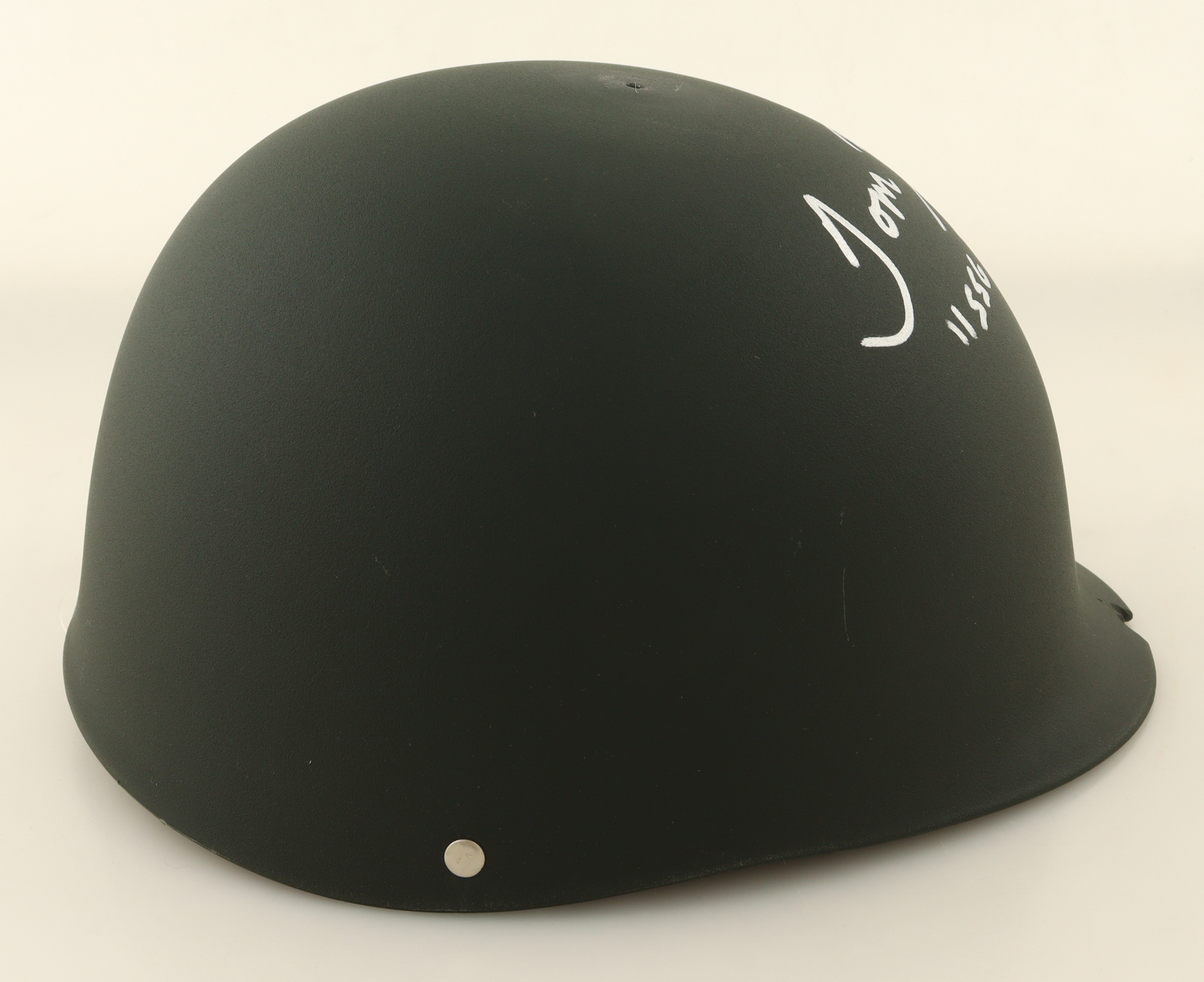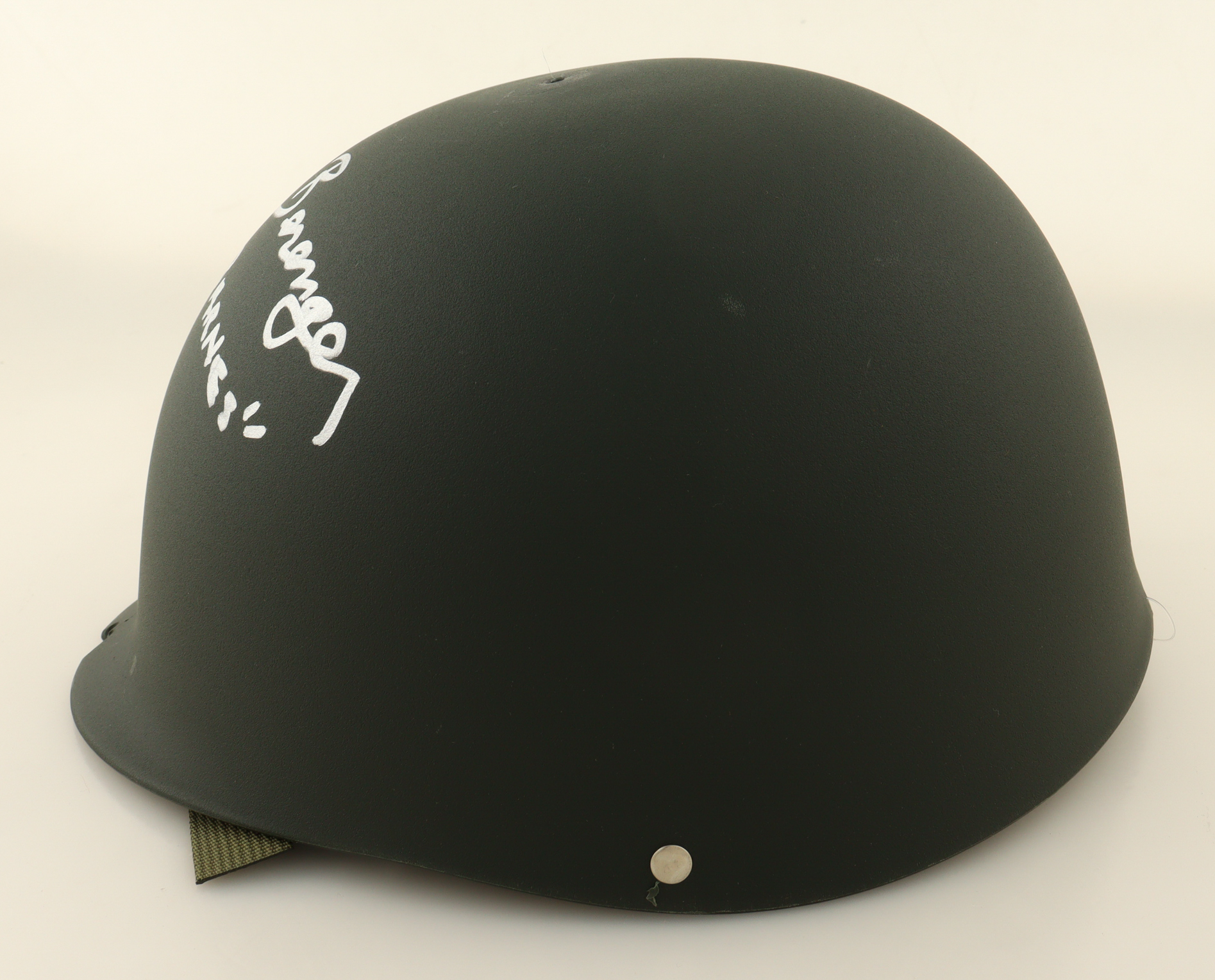 "Platoon" plastic replica military helmet has been hand-signed by Tom Berenger (Bob Barnes).