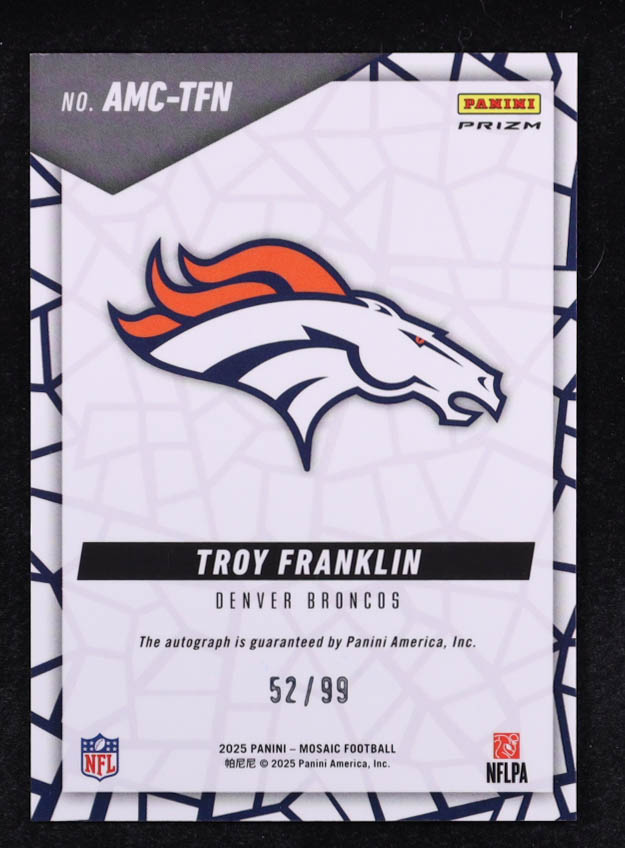 Troy Franklin 2025 Panini Mosaic Autographs Mosaic Blue #38 #52/99