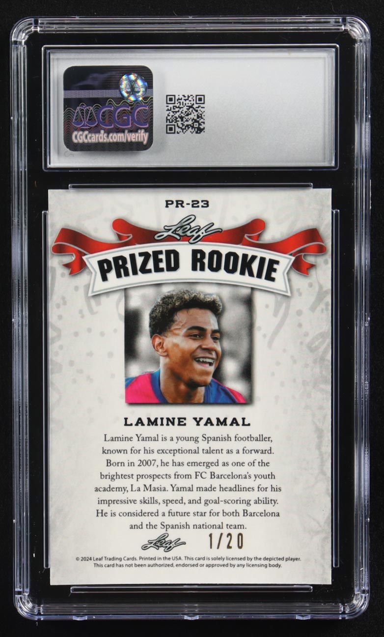 Lamine Yamal 2024 Leaf Special Release Metal Prized Rookie Blue Mojo #PR-23 RC #1/20 (CGC 10)