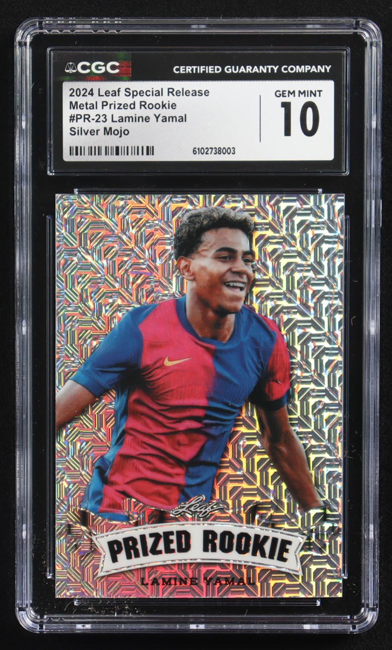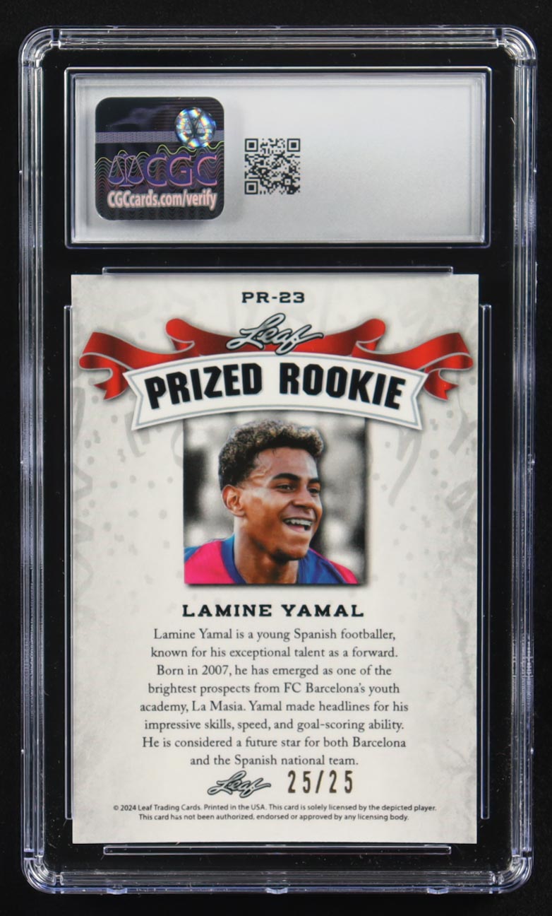 Lamine Yamal 2024 Leaf Special Release Metal Prized Rookie Silver Mojo #PR-23 RC #25/25 (CGC 10)