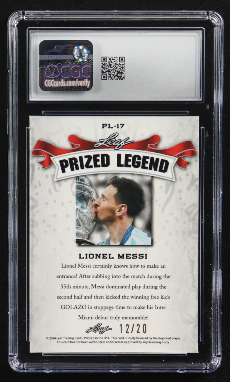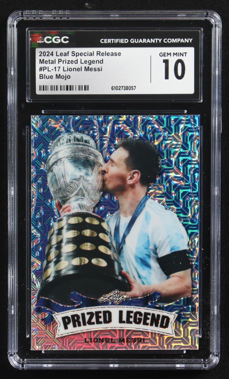 Lionel Messi 2024 Leaf Special Release Metal Prized Legend Blue Mojo #PL-17 #12/20 (CGC 10)