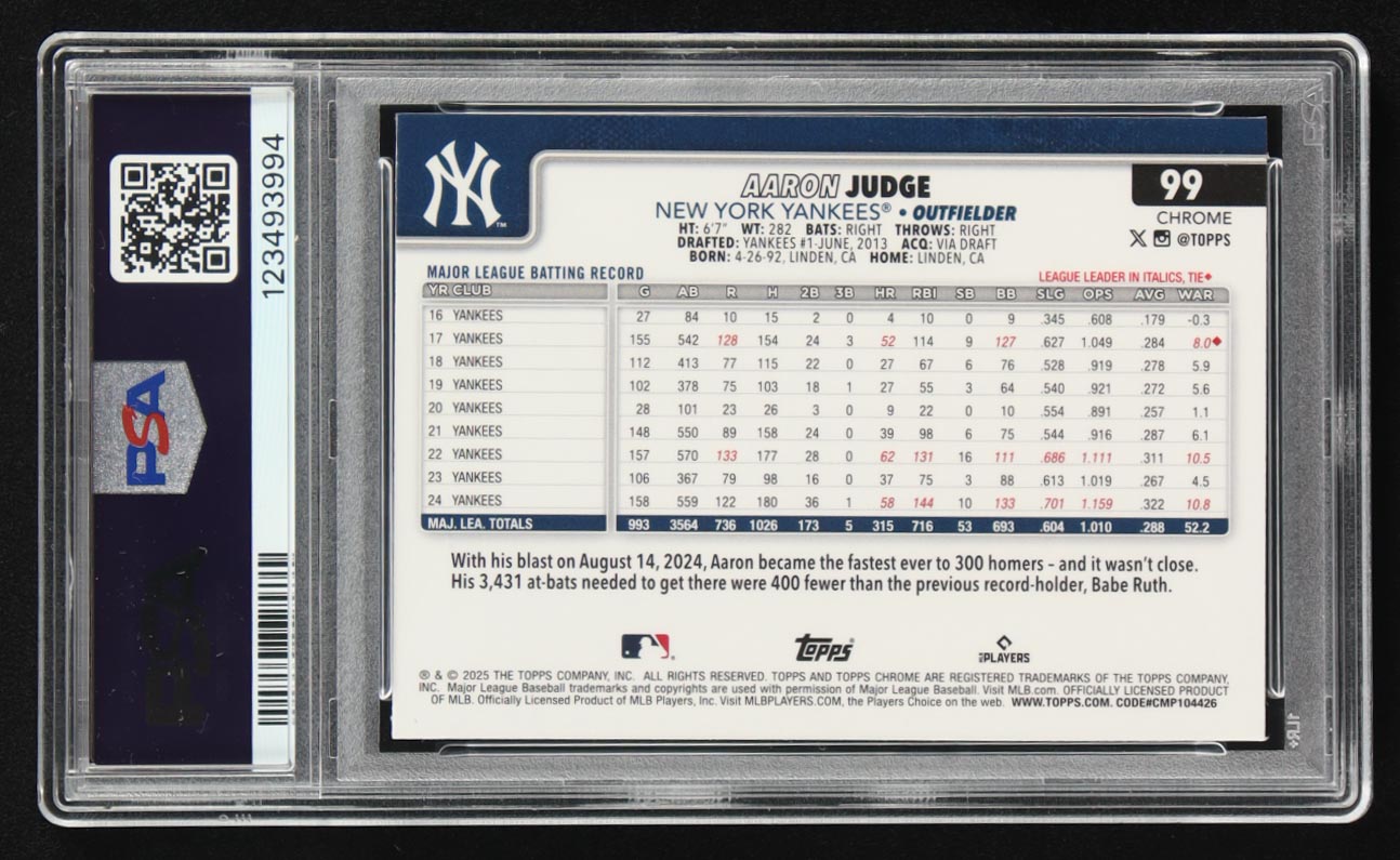 Aaron Judge 2025 Topps Chrome #99 (PSA 10)