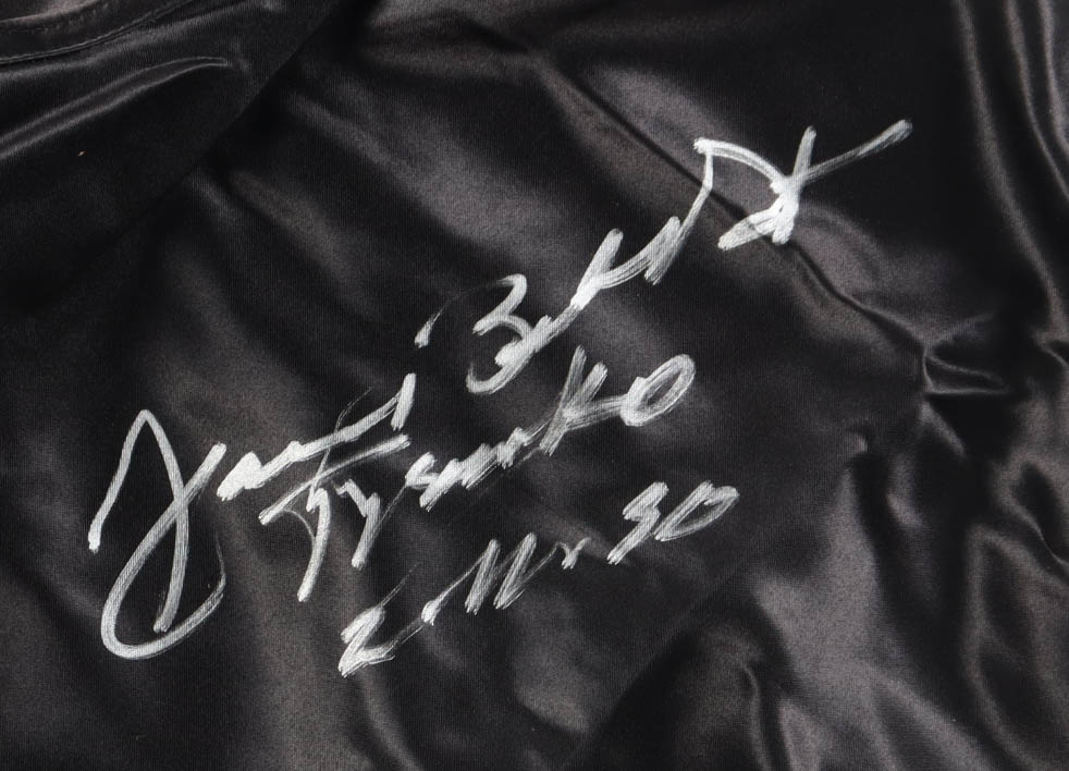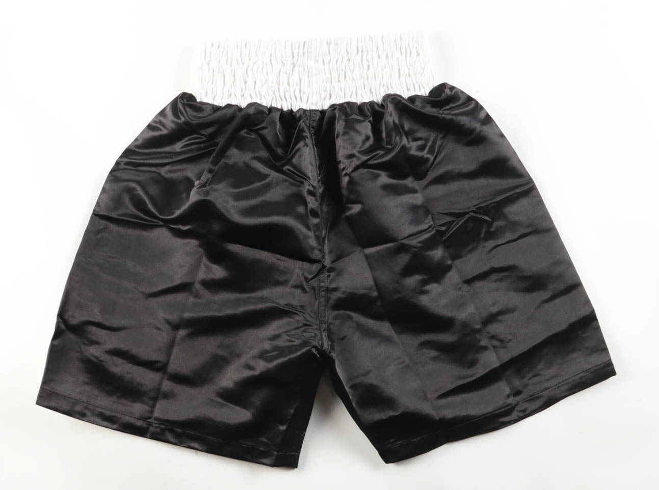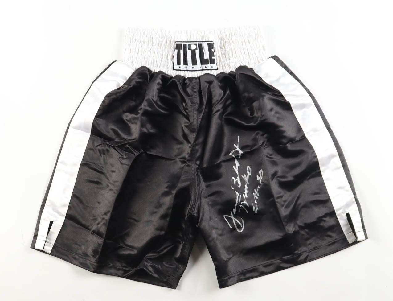 Title Boxing trunks have been hand-signed and inscribed by James Douglas.