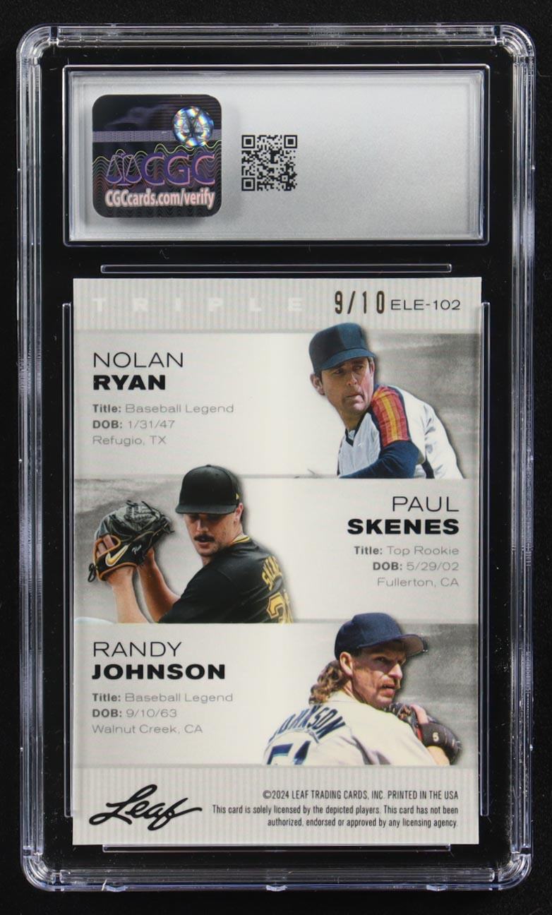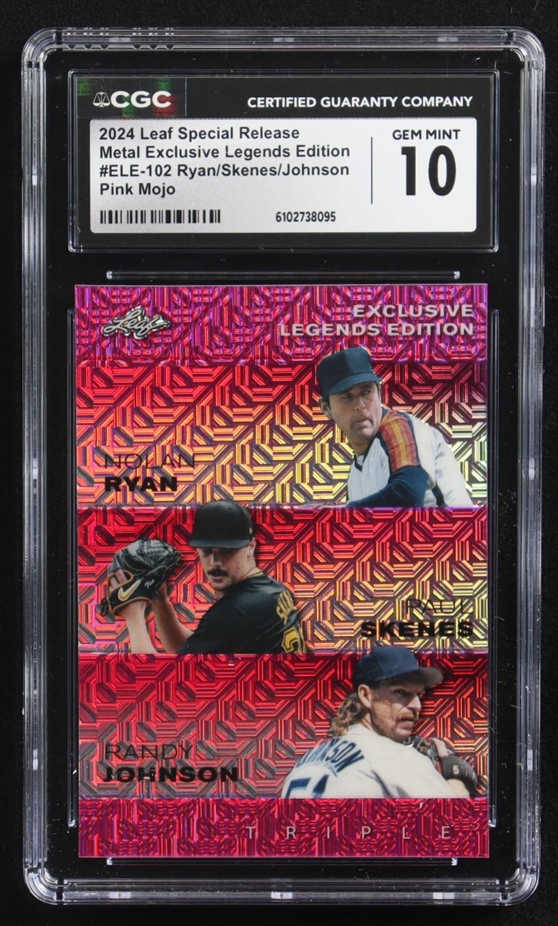 Nolan Ryan / Paul Skenes / Randy Johnson 2024 Leaf Metal Special Release Exclusive Legends Ed. Pink Mojo Triple #ELE-102 #9/10 (CGC 10)