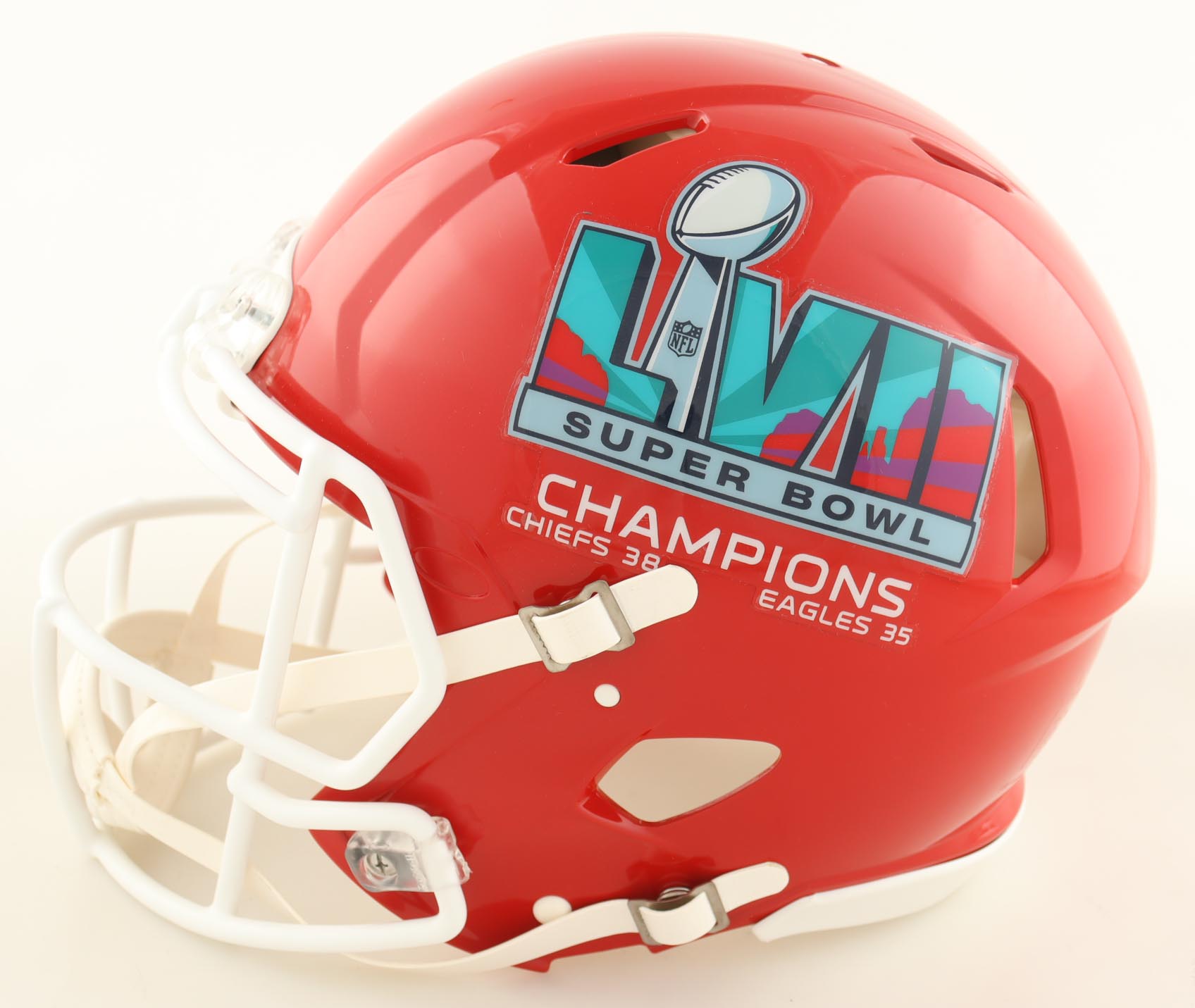 Riddell Kansas City Chiefs Super Bowl LVII Champions logo full-size authentic on-field Speed helmet. Hand-signed by Kadarius Toney.