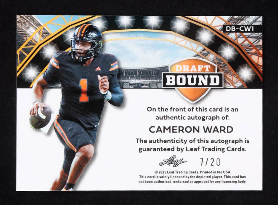 Cameron Ward 2025 Leaf Metal Draft Bound Autographs Blue Prismatic #DBCW1 #7/20 RC