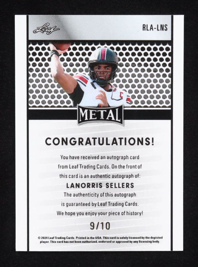 LaNorris Sellers 2025 Leaf Metal Collective Autographs Purple Mojo #RLALNS #9/10 RC