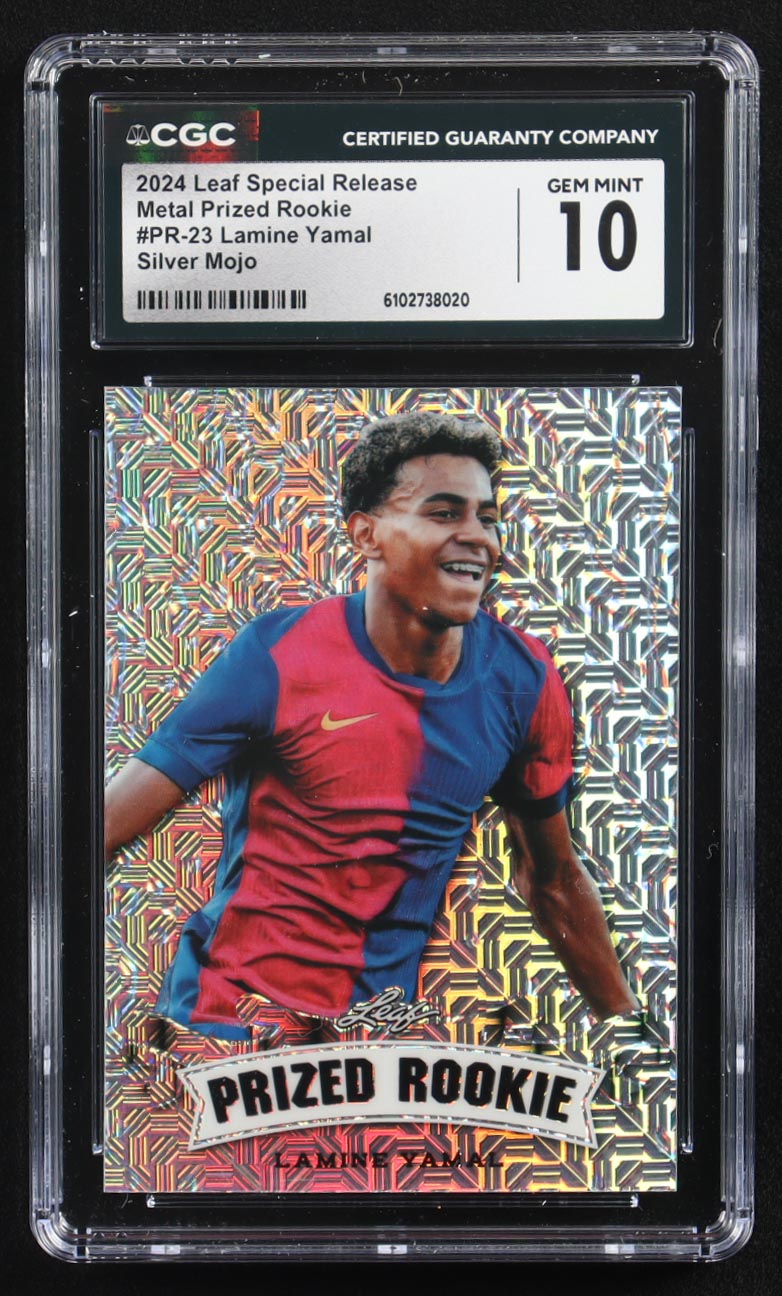 Lamine Yamal 2024 Leaf Special Release Metal Prized Rookie Silver Mojo #PR-23 RC #5/25 (CGC 10)