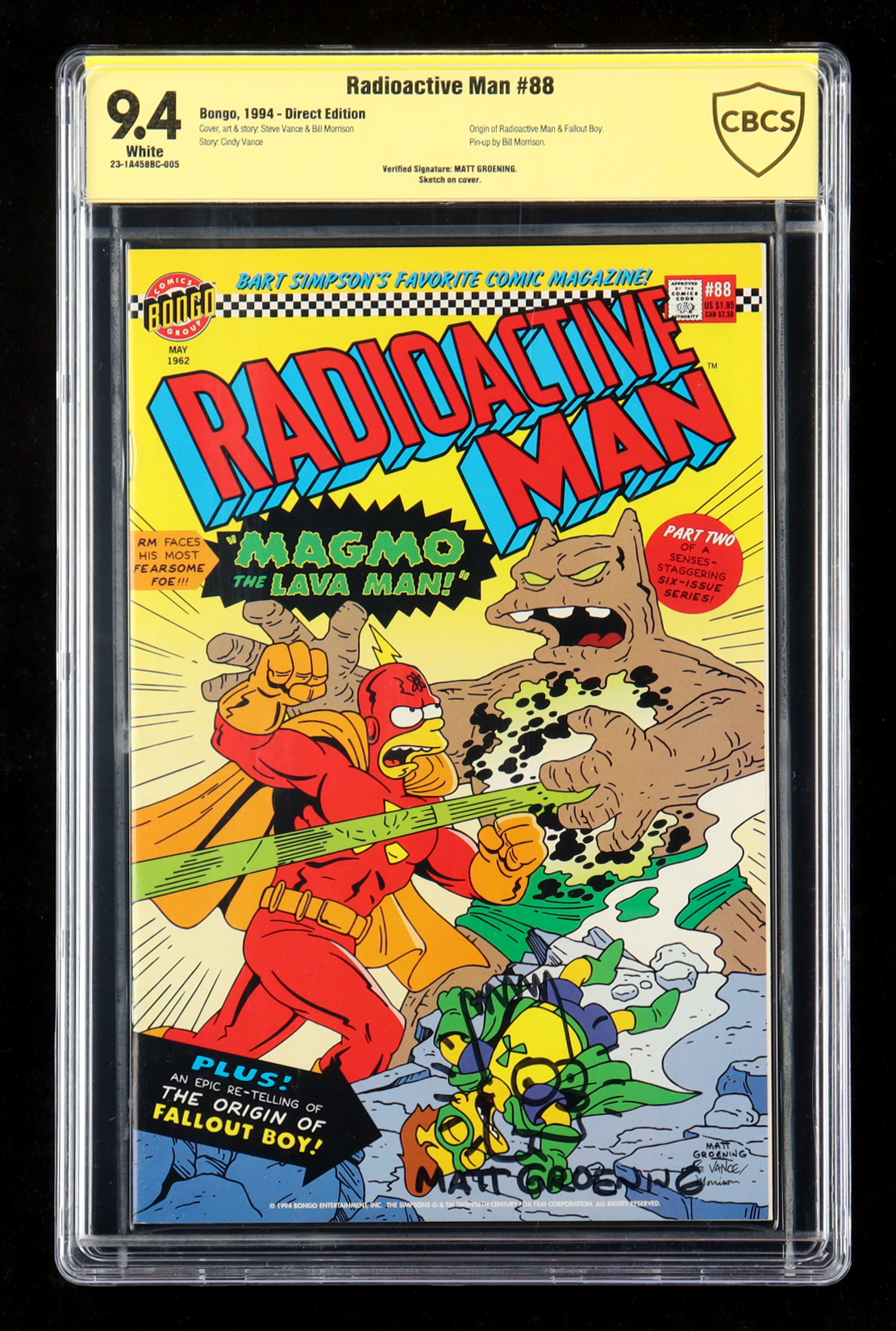 Matt Groenig Signed 1994 "Radioactive Man" #88 Comic Book with Sketch (CBCS 9.4)