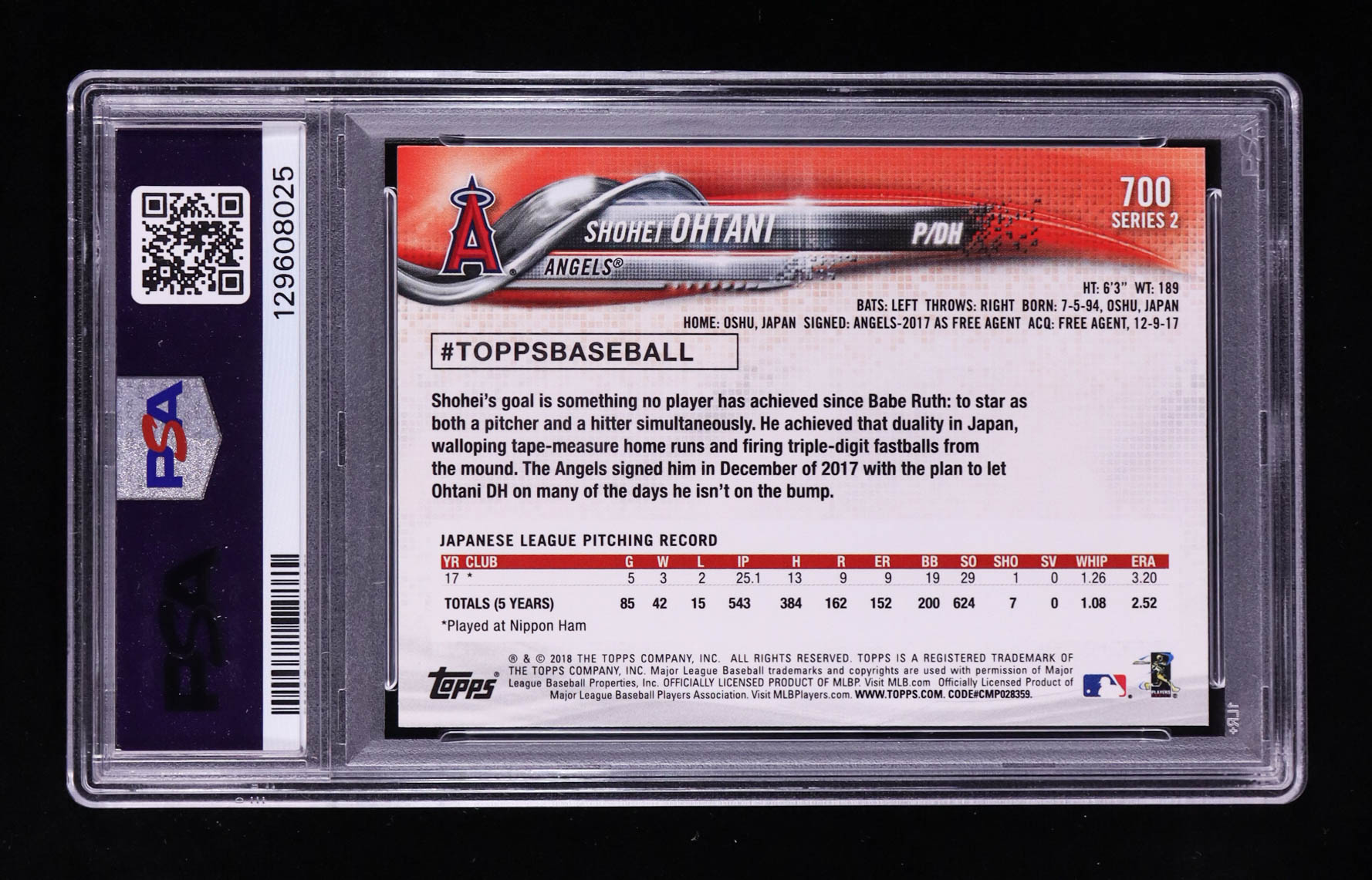 Shohei Ohtani 2018 Topps #700 RC (PSA 9)