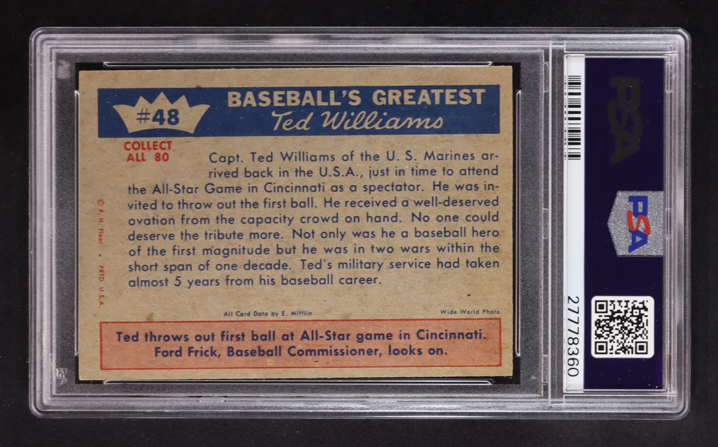 Ted Returns 1959 Fleer Ted Williams #48 (PSA 8)