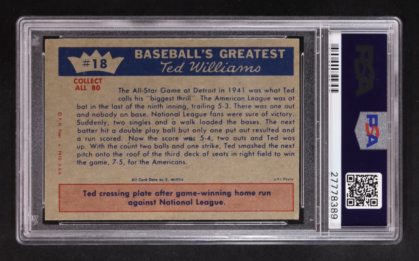 All Star Hero 1959 Fleer Ted Williams #18 (PSA 6.5)