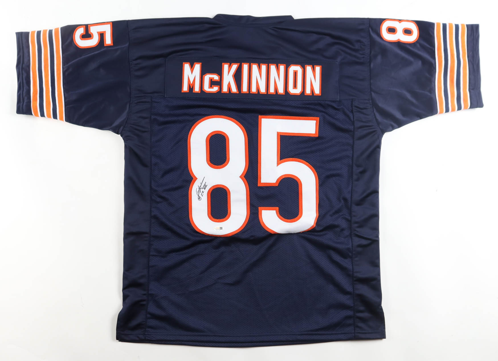Custom jersey with everything sewn on, size XL. Hand-signed and inscribed by Dennis McKinnon.