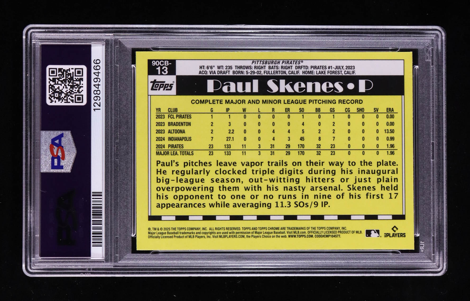 Paul Skenes 2025 Topps Chrome '90 #90CB13 (PSA 10)