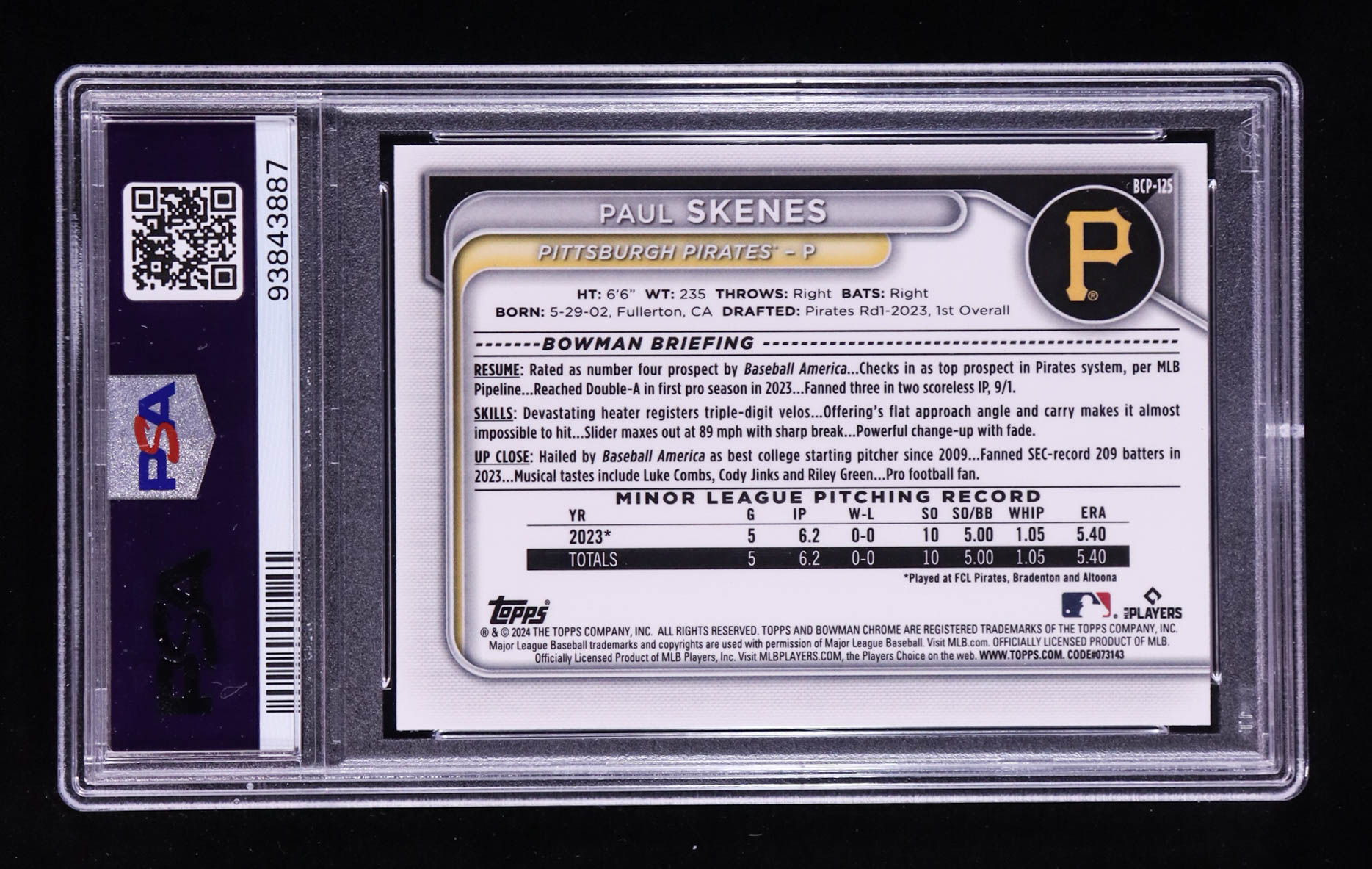 Paul Skenes 2024 Bowman Chrome Prospects Lunar Glow Refractors #BCP125 RC (PSA 10)