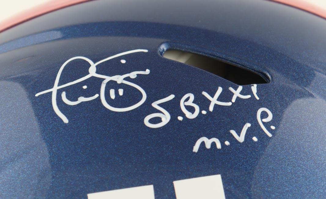 Phil Simms Signed Giants Full-Size Speed Helmet Inscribed "SBXXI MVP" (Beckett)