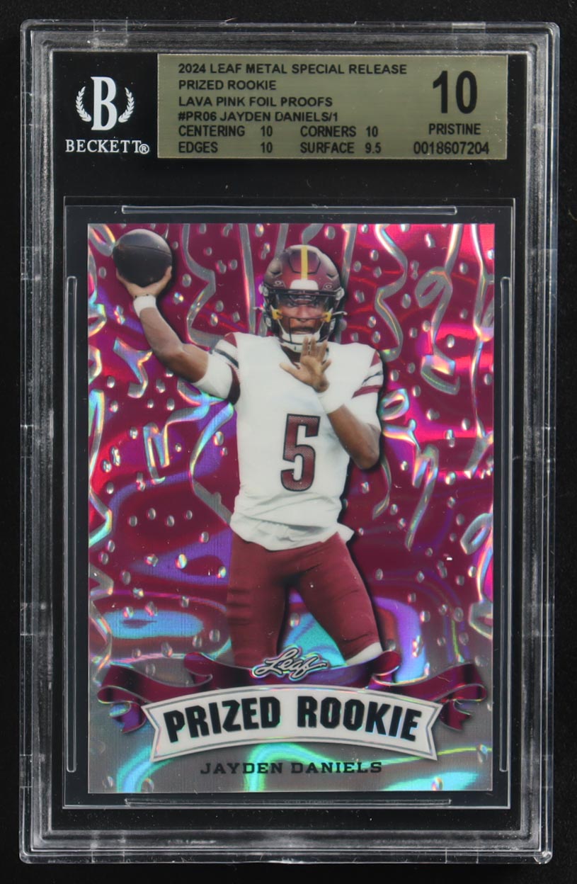 Jayden Daniels 2024 Leaf Metal Special Release Prized Rookie Lava Pink Foil Proofs #PR06 RC (BGS 10)