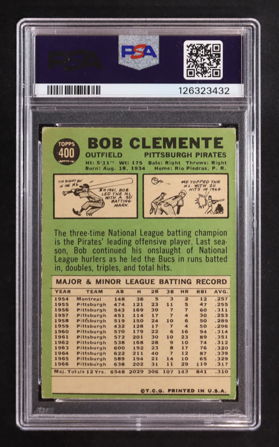 Bob Clemente 1967 Topps #400 (PSA 3)